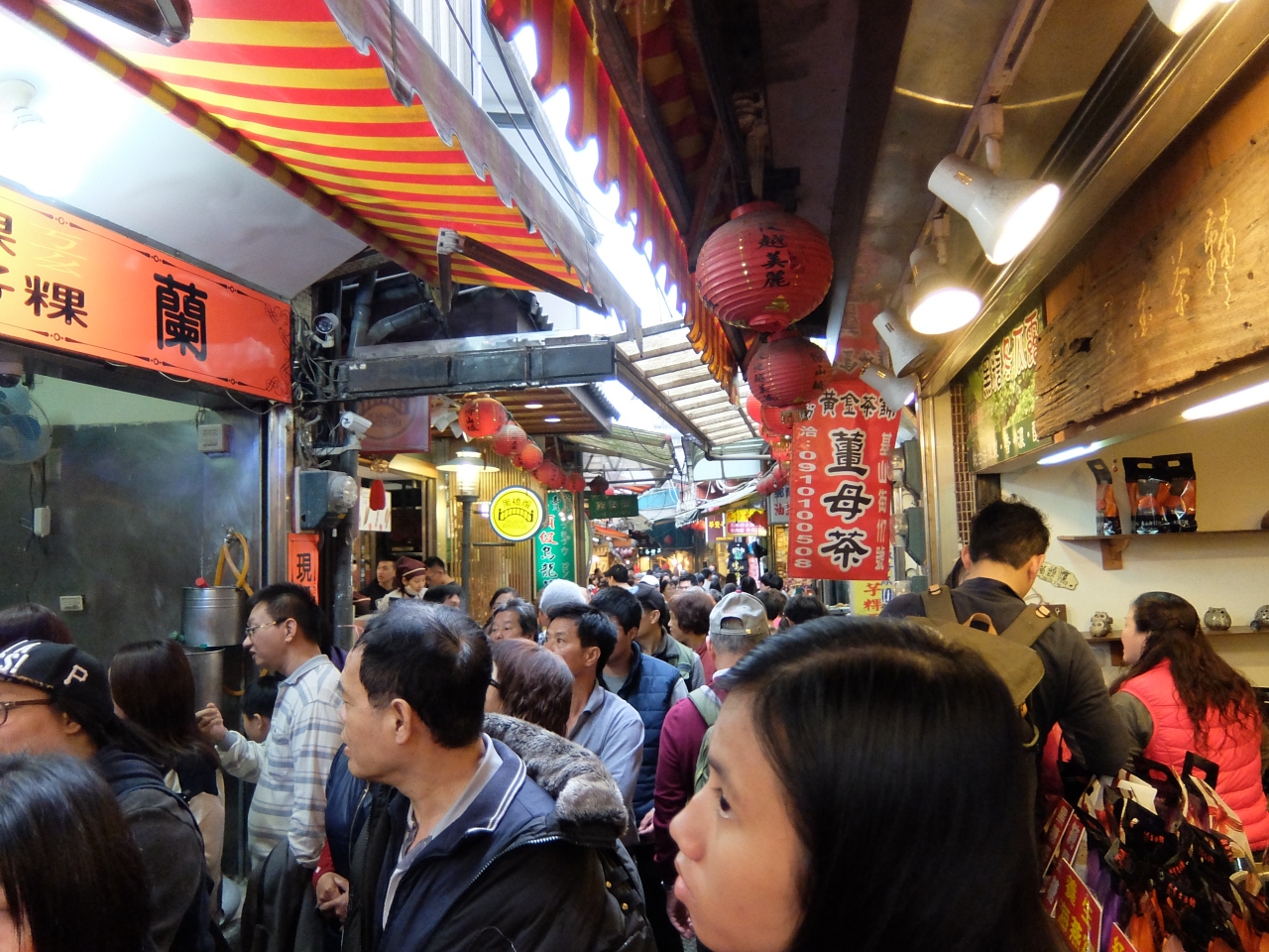 九份の町は、崖を工夫して、開拓しており、そこを上るには、階段である。しかし棚田のように、うまく利用して道を作り、そこに露店が余市のごとく配置されている。食べ物や、お菓子や、洋服やなどなど、配列など関係なしに賑わっている。台湾の風物詩の一つである。