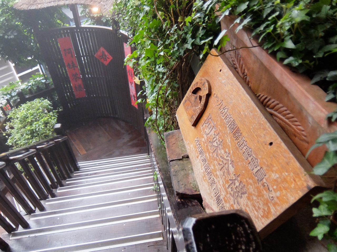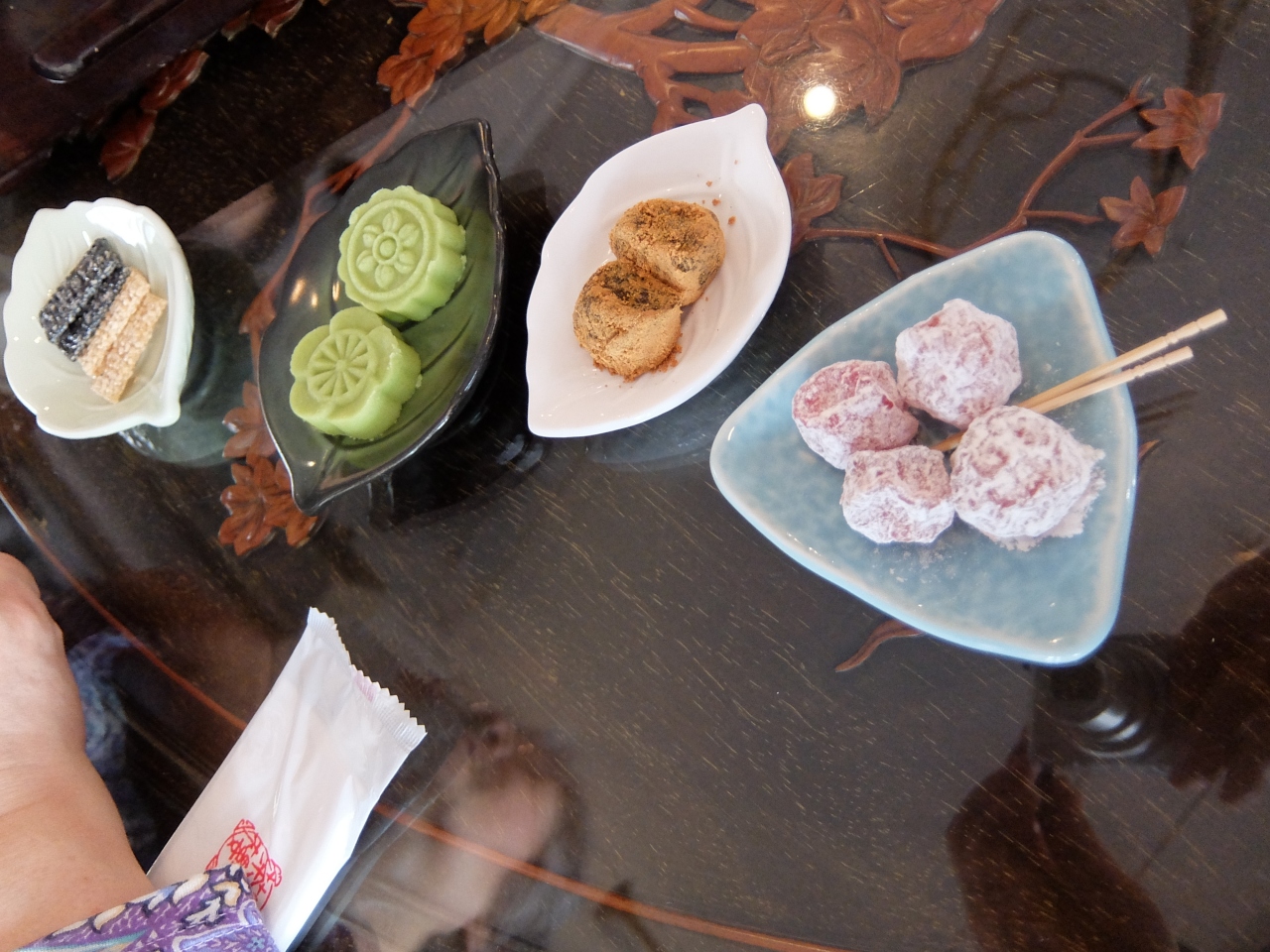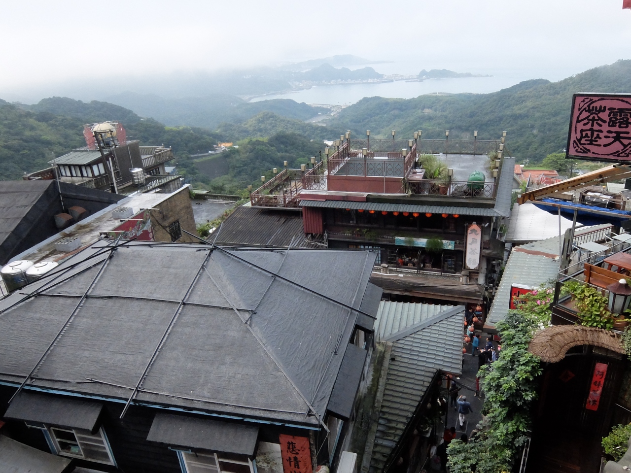 急な坂を上り下りした後の休憩。コーヒーショップならぬ烏龍茶のカフェである。300元で、ウーロン茶飲み放題と、昔ながらのお菓子、さらに窓から見える(晴れていれば)海を見晴らす景観。この景色だけでも、一見の価値はある。