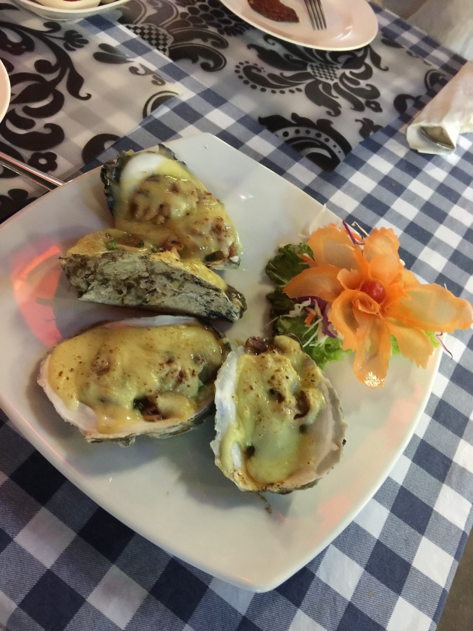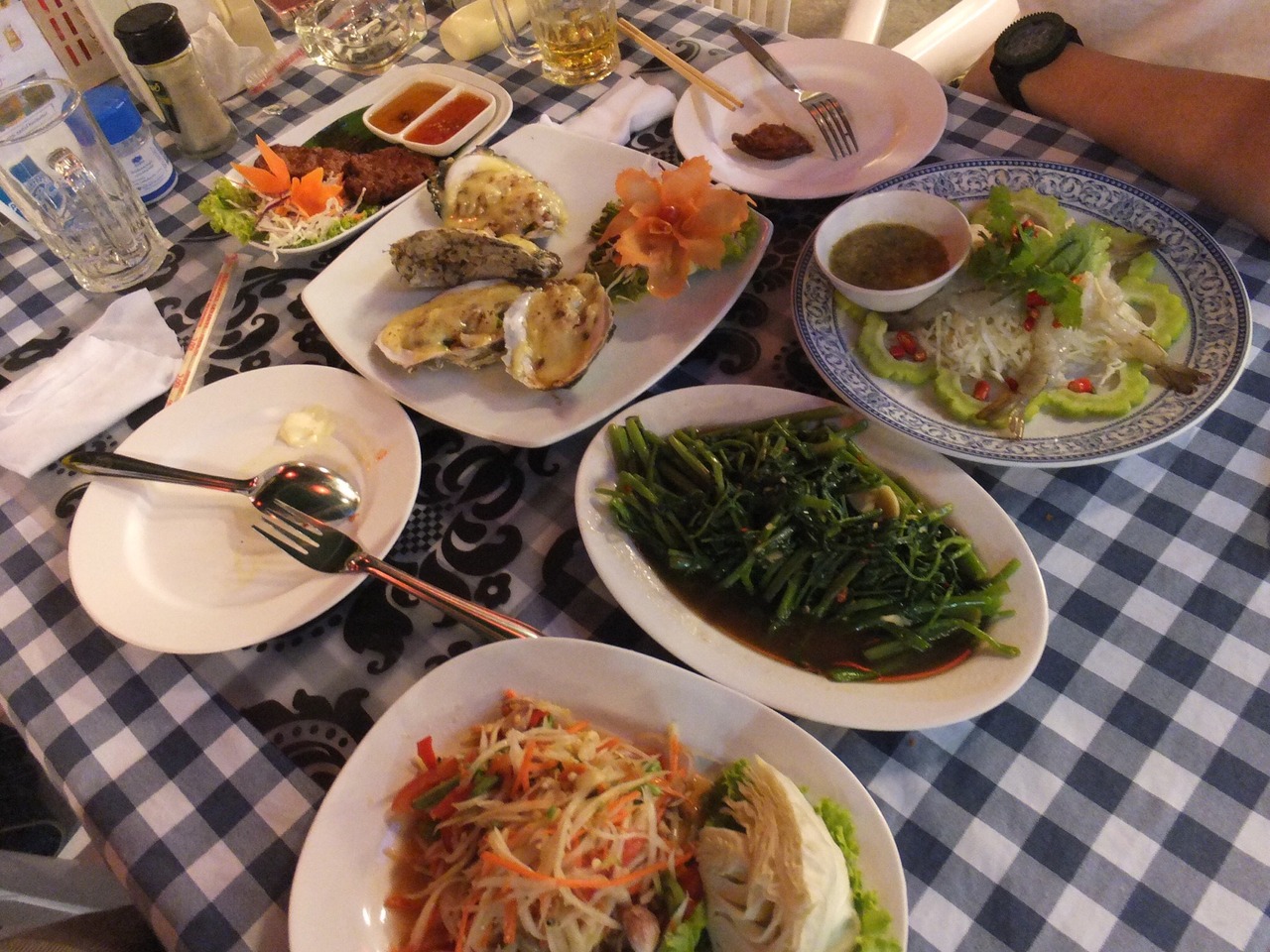 初日で寝不足、疲れもあるので、前回は生牡蠣だったけど、今回は焼き牡蠣に!大きめのプリプリした食感にミルキーな味わいたまりませんな~。大丈夫と太鼓判は押せませんので自己責任でどうぞ!炒め物も最高に美味しいです。決まった味に飽きてくるので日本から小さなマヨネーズを持参すると味が広がるかも(^_^)