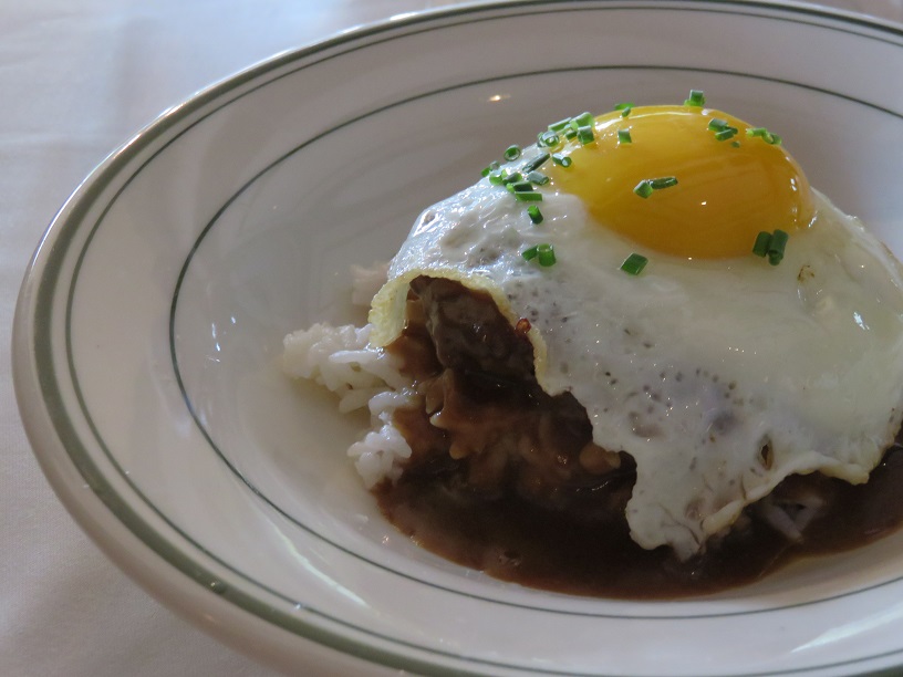 このミニモコがトロトロの卵とステーキ店の肉を使ってるのでしっかりしたハンバーグ、ミニモコはハッピーアワーだけのようですね。