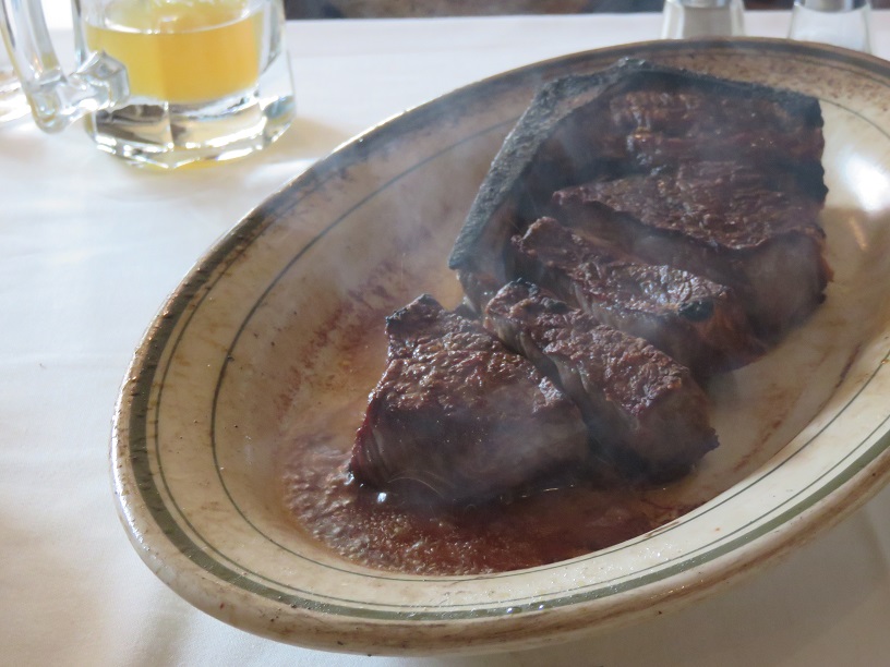 ステーキは2人でシェアして丁度良いです。ジュージューと焼かれたステーキが運ばれ、手際よくウェイターが取り分けてくれます。想像通り、とても美味しく頂きました。