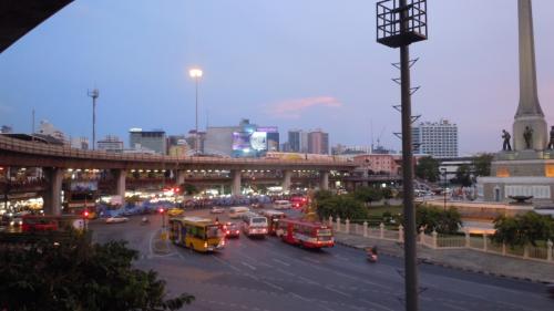 ヴィクトリー・モニュメント駅前は、戦勝記念塔を中心にロータリーになっており、その周辺は各方面に向かうバスの停留所があるため、常時バスが行き来しています。