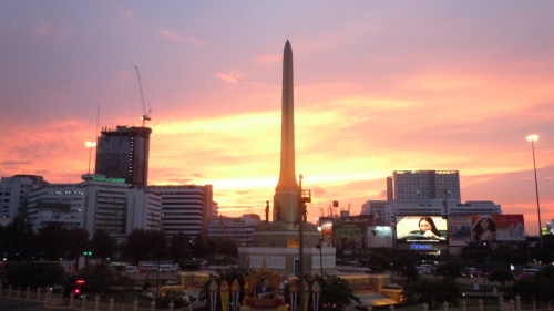塔を囲むロータリー、そのロータリーに沿う形で走るBTS、経由する多くのバスや長距離ワゴンなど、バンコク最大の交通の要所とも言える。