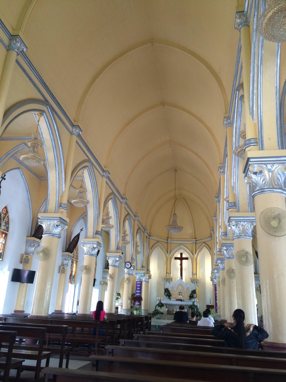 中は黄色でキレイな教会でした。