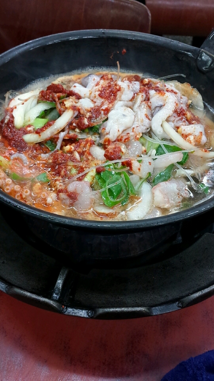 地元客ばかりでした。ひとりでも大丈夫なお店でした!真っ赤ですが全然辛くありません。パンチャンのニラを入れると美味しくなります!最後にポックンパをしましたが、周りはうどんを入れる方ばかり。うどんの方が美味しいのかな?