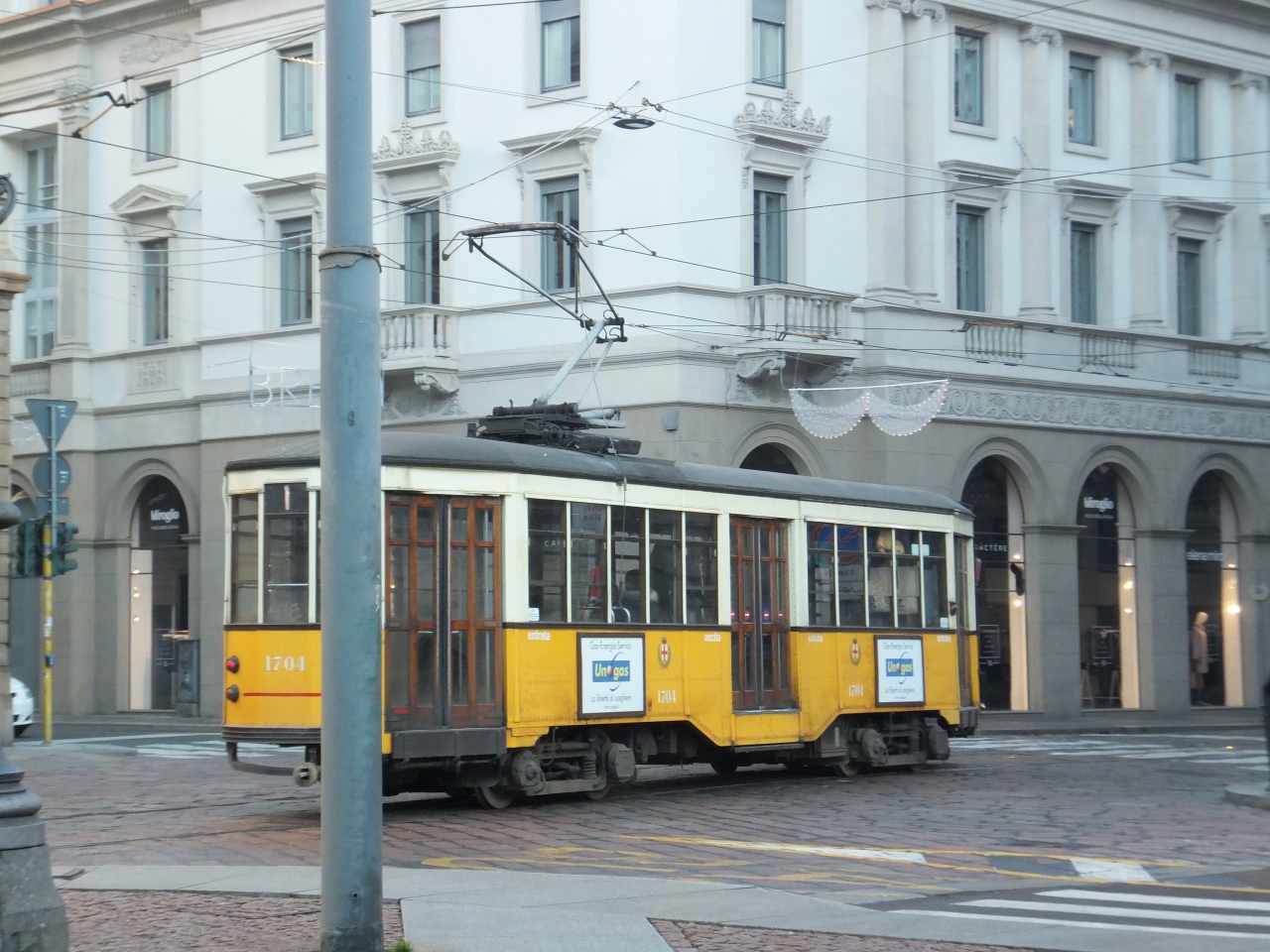 ミラノの中心部の移動に便利な道路を走るトラムです。