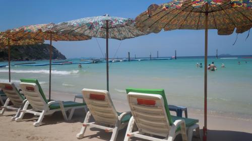 大型船からビーチまで行くのに10分程度見ておいた方がよい。白い砂浜にエメラルドグリーンの海、パタヤビーチとはえらい違いです。