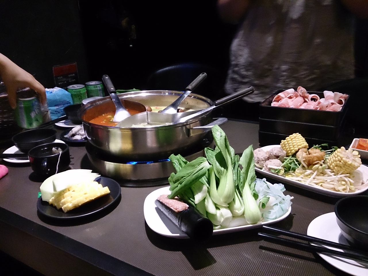 食べ放題の火鍋屋さんです。材料は、お肉以外はセルフサービス。デザートも飲み物も食べ放題!比較的落ち着いた雰囲気のお店なので落ち着きます。