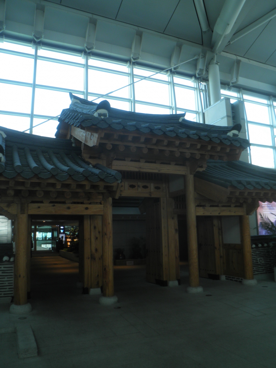 韓国のインチョン国際空港は大きな空港なので、けっこう飛行機を降りてから入国審査場まで歩く必要がありました。 動く歩道もあるけど、片方向だけのところもあります。 動く歩道を利用する人をあきさせないためか、昔の偉い人の行列のアニメーションがあったり、歴史的なものが並べられていたり工夫がなされていました。