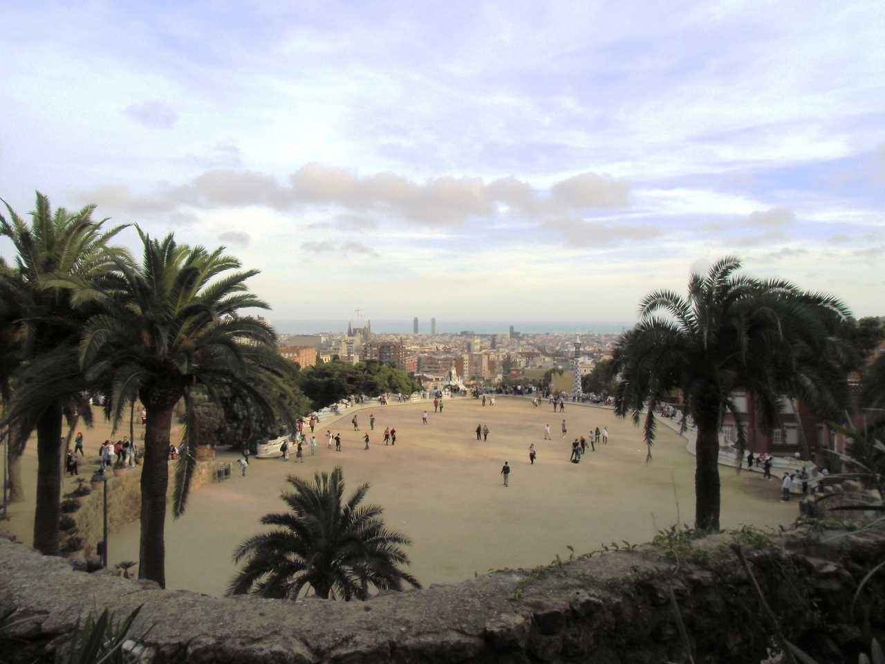 地図を見間違えて裏門のようなところから入ってしまい、普通とは逆ルートで見回りました。最初に出たのは高台にある展望広場、そこからはバルセロナの街並みと奥には海、小さくサグラダファミリアも見えて見晴らしは最高です。