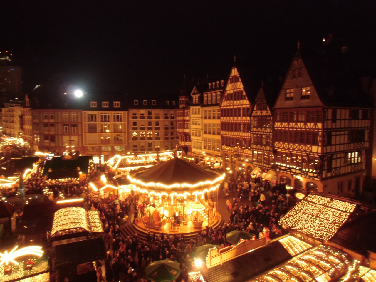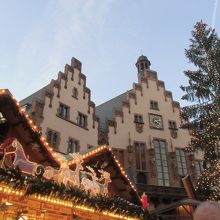 高層ビルがそびえ立つフランクフルトでドイツらしい可愛らしい街並みがあるのが、この広場です。