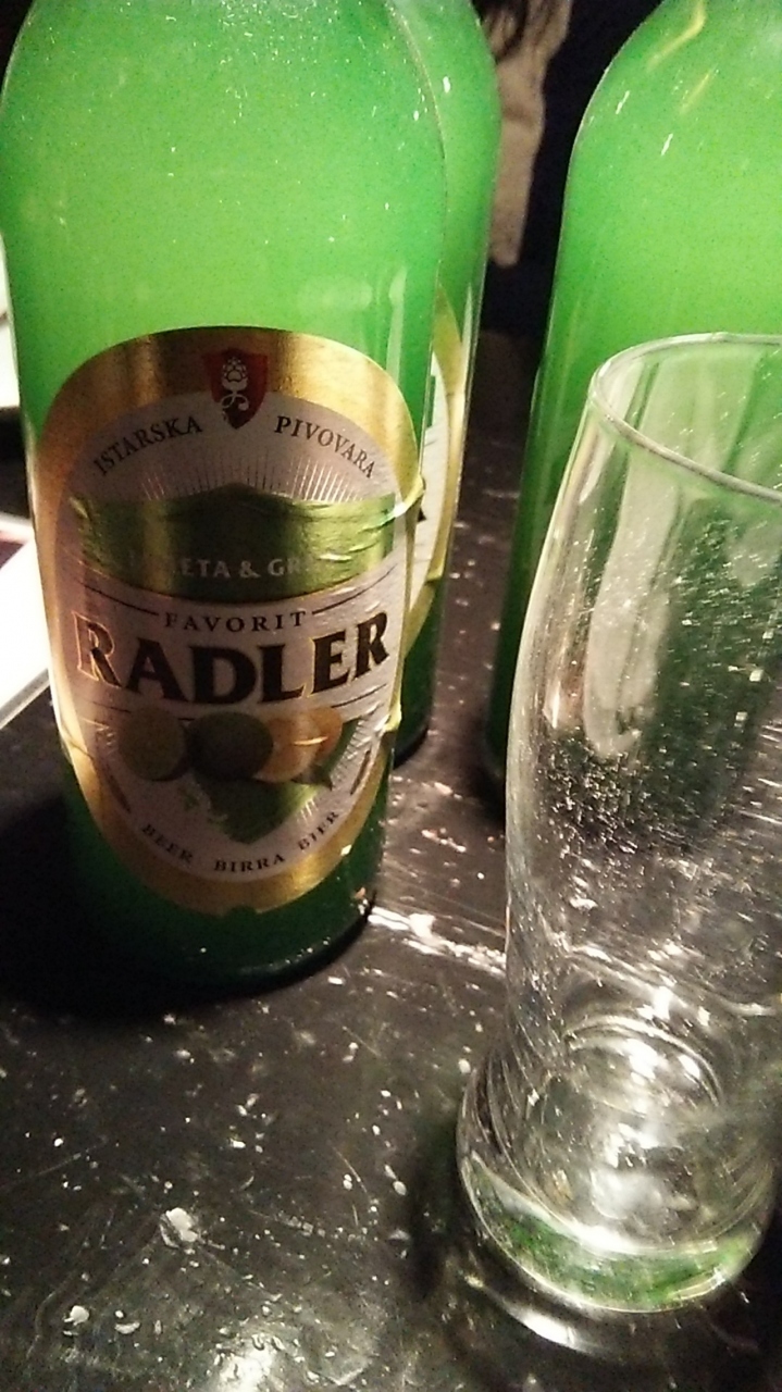 タコのサラダ、シーフードリゾット、Raddlerというレモンビールを頼みました。