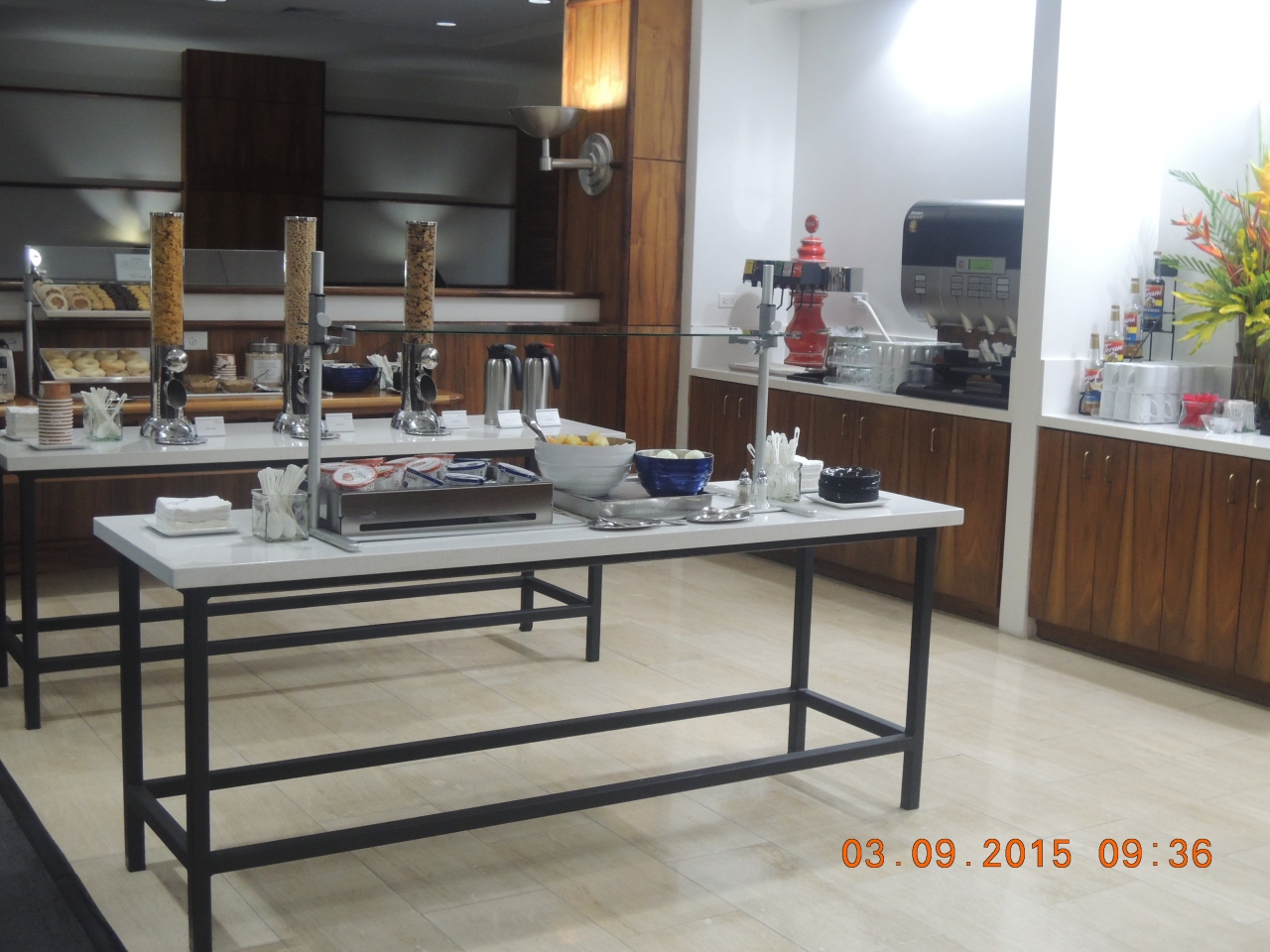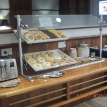 午前便の出発だったせいかはじめは貸切状態で、私達の他に数人しかいなかったので、静かでゆったり出来ました。食事の用意はなく、飲物の他はペーグル・マフィンにヨーグルトにカットフルーツだけでした。ハワイらしくグアバのジュースもありました。