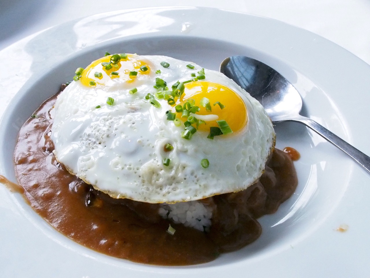 ロコモコを注文すると、卵焼きが2つのったものが運ばれてきました。