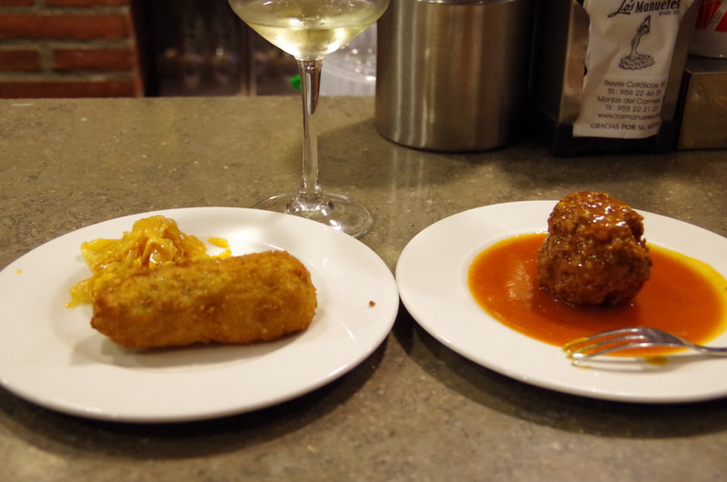 コロッケもこのお店の名物。スペインで食べたコロッケはここでもそうだが、ポテトコロッケというより、クリームコロッケに近いもの。これも美味しい。大きさの割には安くて、1個1.25ユーロ。
