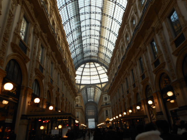 スカラ座を背にして、スカラ広場とドゥオモ広場を結ぶアーケードです。鉄枠のガラス天井で明るく、モザイク画の床で、中は、有名ブランド店が軒を並べて、レストラン、カフェがあり、趣のあるアーケード街です。イタリアを旅すると、イタリア統一の”ヴィットリオ・エマヌエーレ2世”の名が付けられたスポットのなんと、多いことに気付かされます。