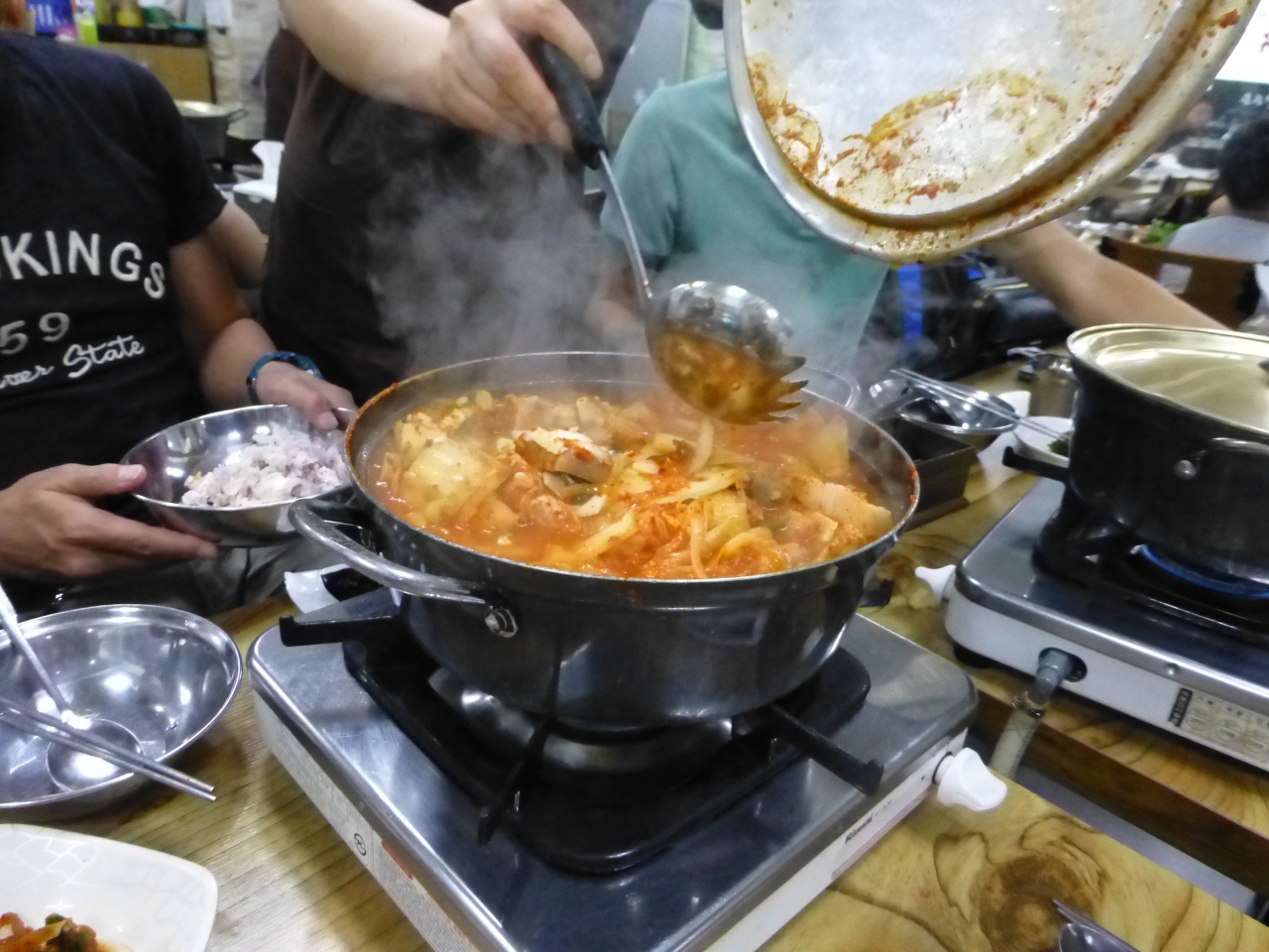 夜のメニューは、サムギョプサルとキムチチゲのみ。