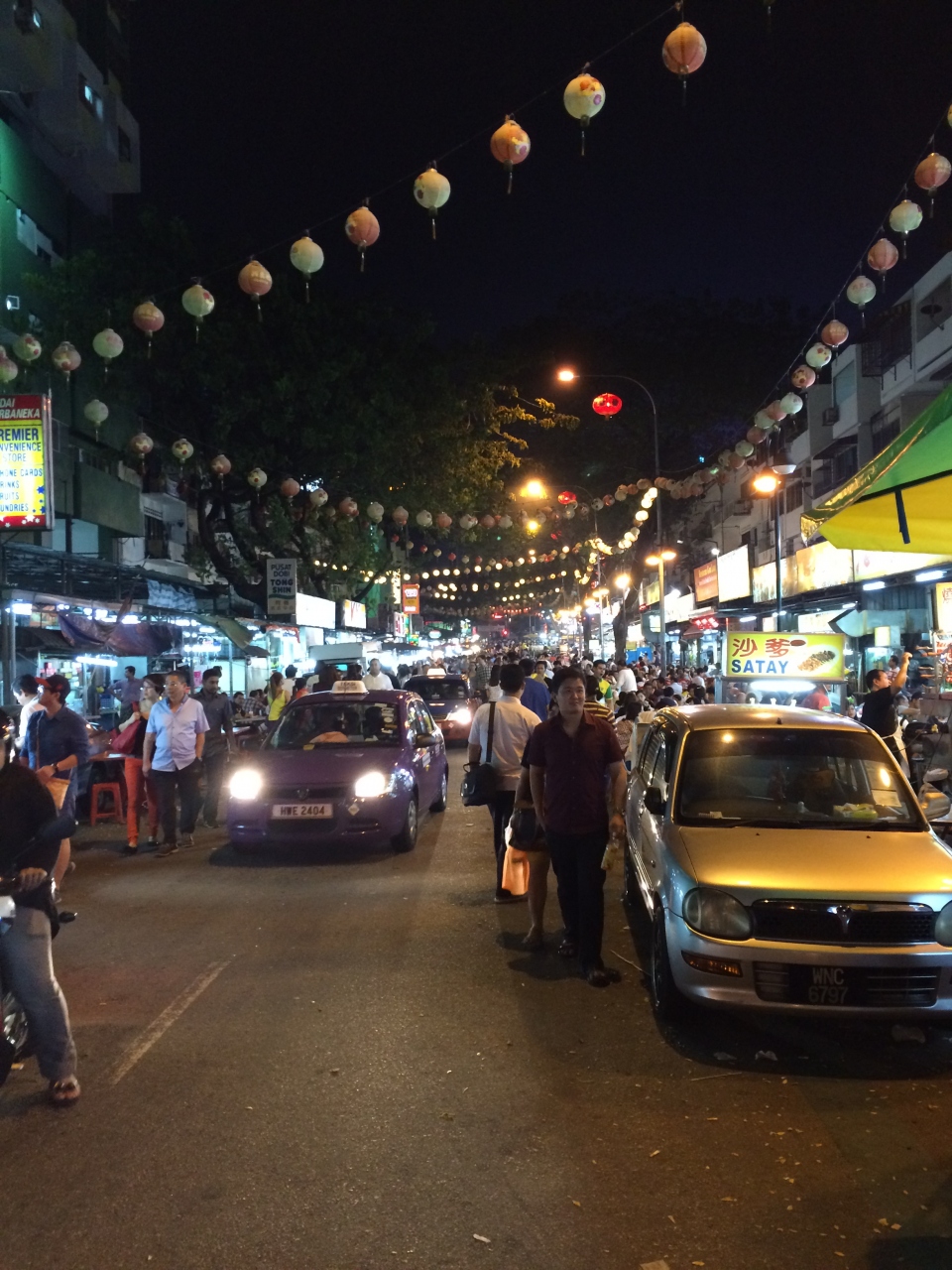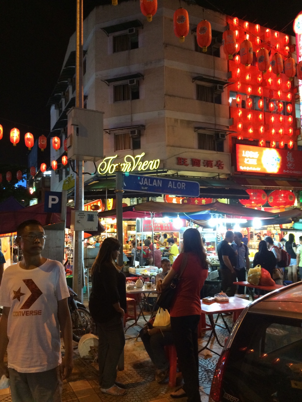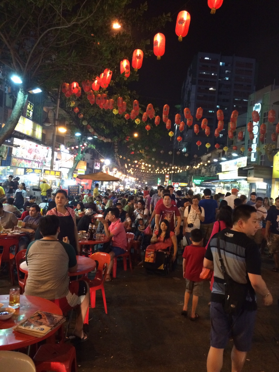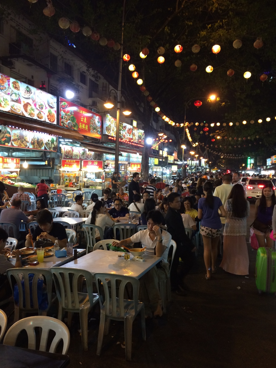 宿泊したブキッビンタンのイズミホテルからとても近かったので、夜に歩いて行ってみました。ブキッビンタンはクアラルンプール一と言ってよい繁華街で、高級ショッピングモールなどが立ち並ぶ街です。しかし、このアロー通りの屋台街だけは、とても庶民的で多くの人で賑わっており熱気があります。タイ料理、中華、ドリアンなどのフルーツ、焼鶏のサテーなど様々な屋台が300Mぐらいの通りにたくさんあります。値段も安く、写真付きメニューがある店が多いので、割と入りやすいかなと思いました。地元の人だけではなく観光客もたくさんいました。夕方5時ぐらいから深夜までが一番活気がある時間帯です。南国のオープンテラスでビールを飲みながら、料理をつまむのはなかなかいいですよ。