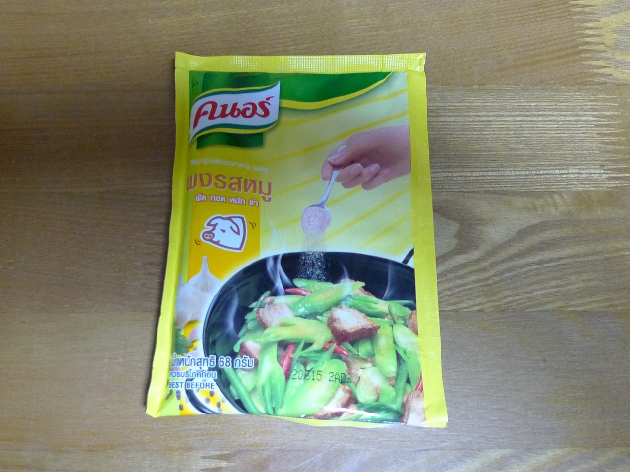 パッケージから推察すると豚肉、野菜、唐辛子を炒めたところにパウダーを一匙かけるとタイ料理になる。