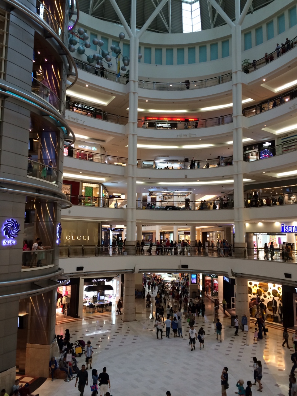 ペトロナスツインタワーを見学した後に立ち寄りました。かなり近代的な高級ショッピングモールで、規模の大きさに驚きました。館内は、中央の吹き抜きエリアの周りに店が広がっています。世界各国の一流ブランドからユニクロのようなファストファッション、伊勢丹や紀伊国屋まであります。少し変わったところでは、ハーレーダビットソンのショールームがありました。2Fと4Fにはフードコードがあり、ここなら比較的安く食事ができます。隣にある公園では夜に噴水ショーがあり、ここから見ると綺麗だと思います。日本食レストランも2、3軒ありました。昼間の暑い時間にゆっくりするには丁度いい場所でした。