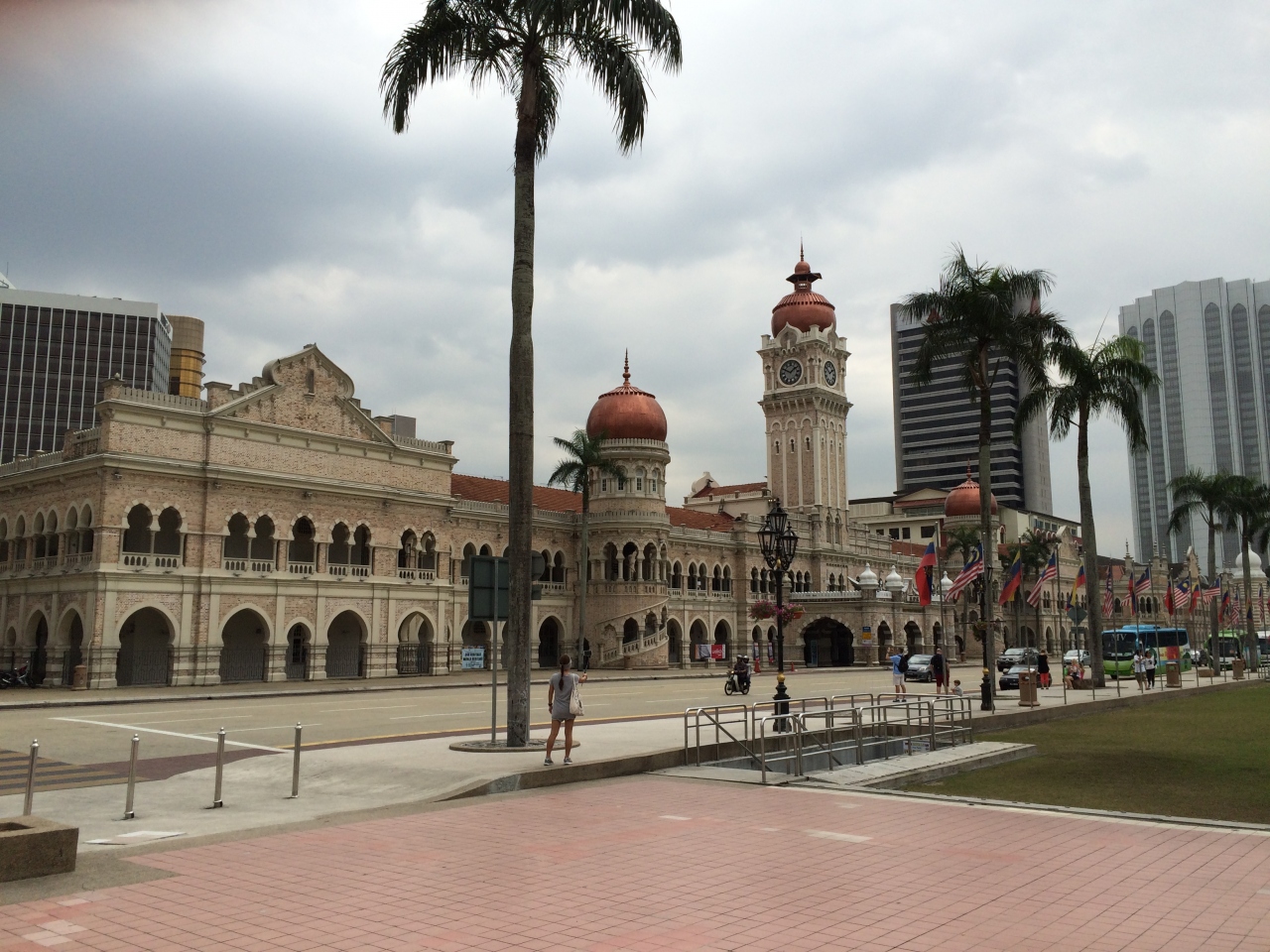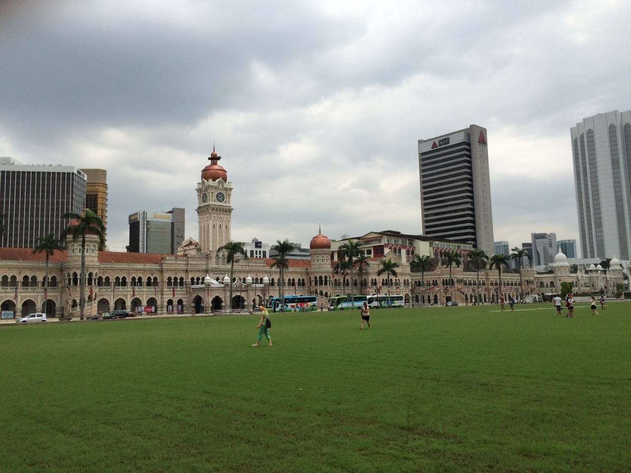 ブキッビンタンからタクシーで行きました。15リンギットぐらいで、約10分ぐらいで到着しました。この広場は、1957年8月31日にイギリス連邦からの独立が宣言された歴史的な場所で、マレーシアの人々にはとても重要な場所だということです。広場の南端には、世界一の高さを誇る100mの掲揚塔に国旗がはためいており、独立記念日の式典も毎年ここで行われています。広場は芝生と国旗の掲揚塔があるだけですが、なかなか見晴らしが良くて気持ち良かったです。広場の周りのイスラム建築の建物も綺麗です。観光地が少ないクアラルンプールでは有名な場所なので、一度は訪問をおすすめします。
