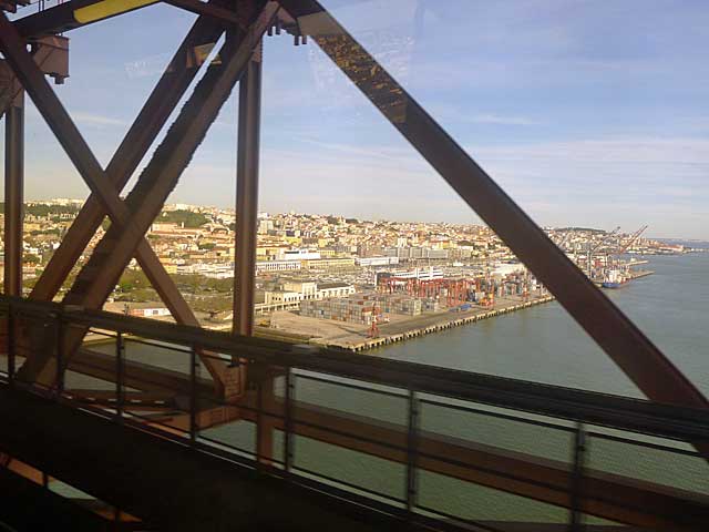 リスボンのテージョ川にかかる大きな吊り橋です。
