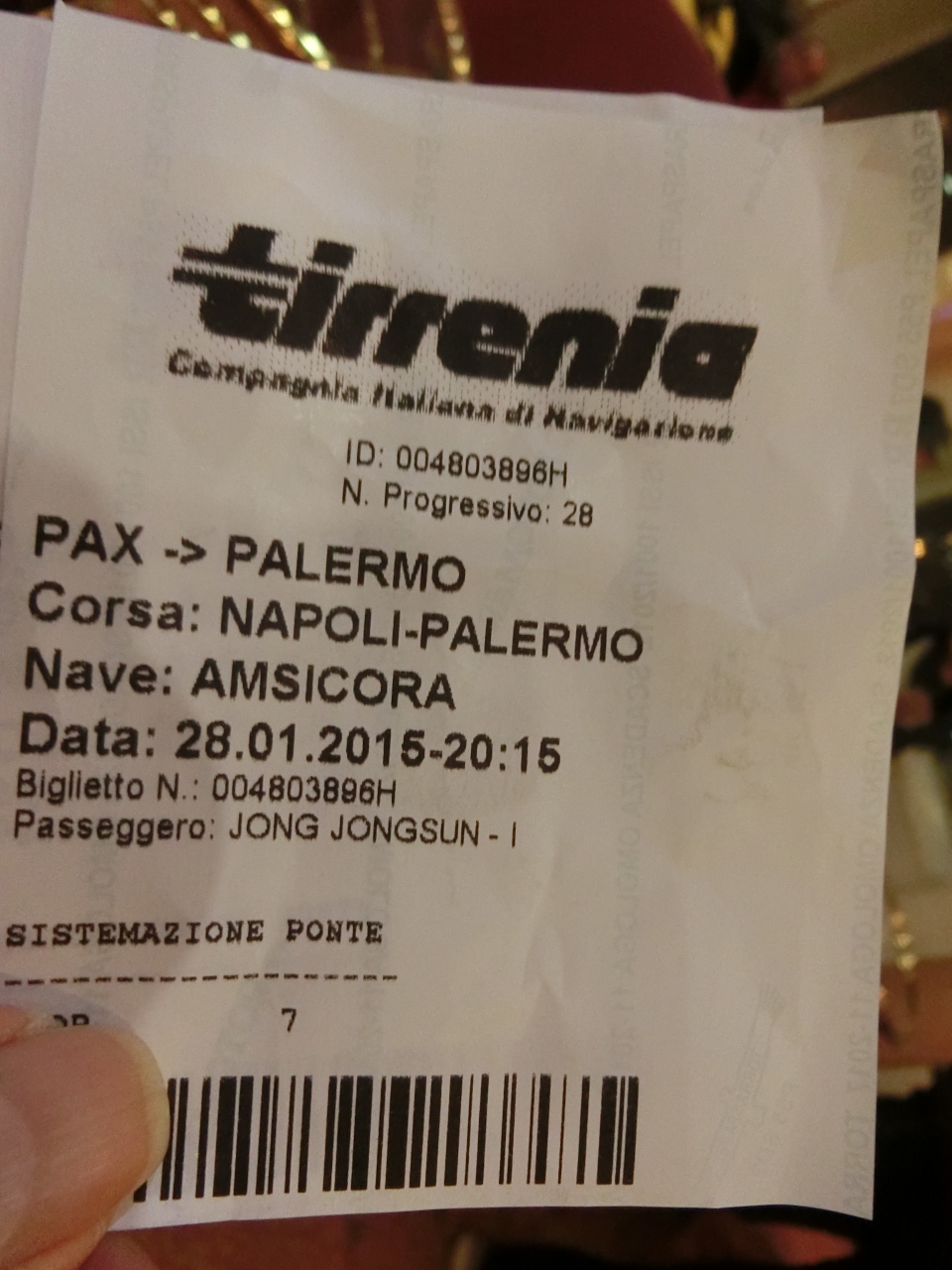 ナポリからティレニア号でパレルモに!