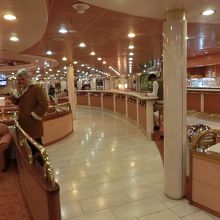 ナポリで夕食を食べた後、夜、フェリーのティレニア号に観光バスごと乗り込みました。