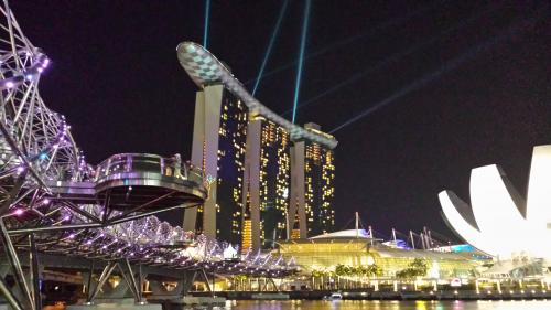 マーライオンのある対岸からの方が、美しいレーザーと水の壮大なショーが楽しめます。