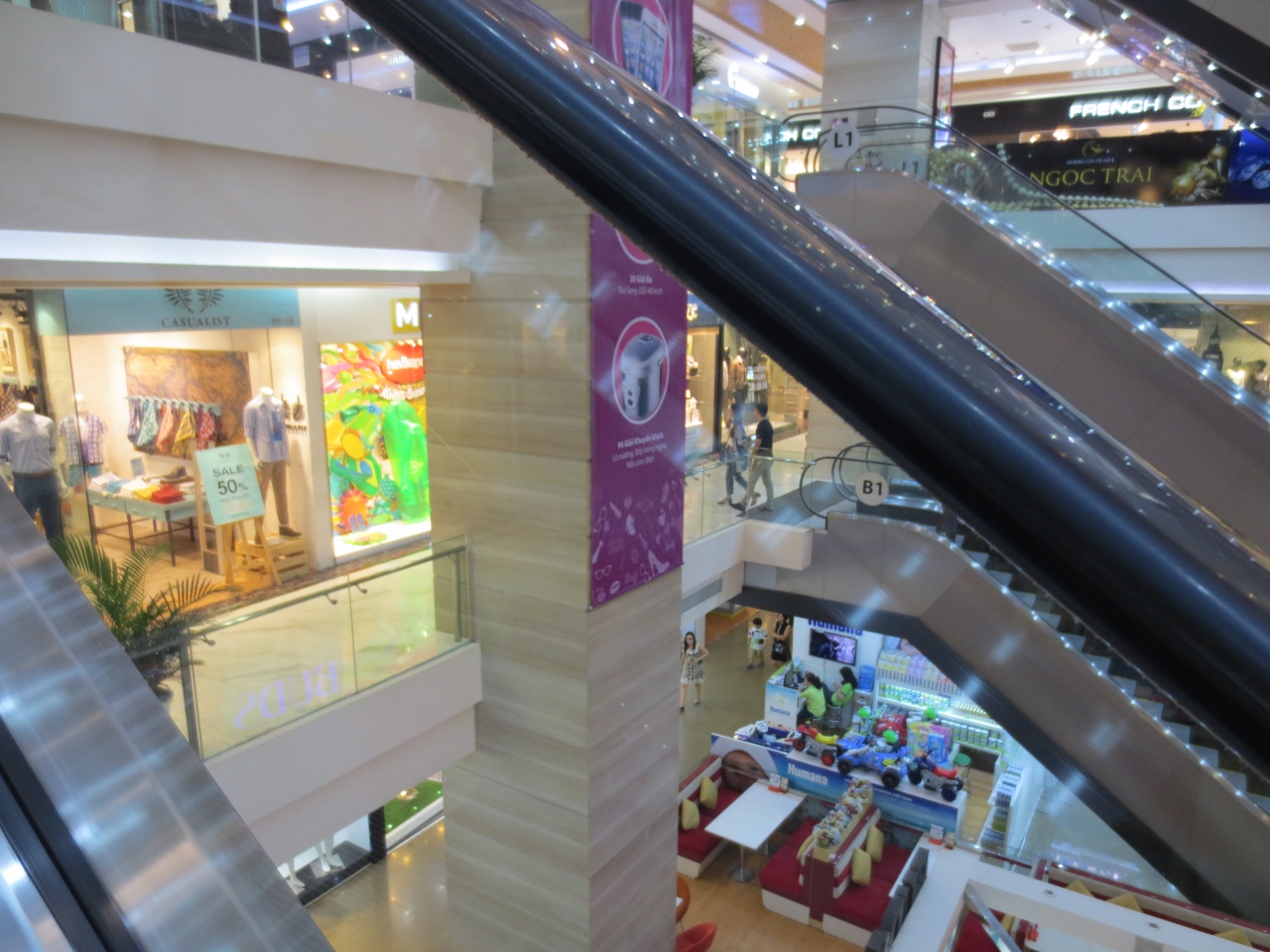 夕食を終えホテルに戻る途中で気になっていたビルだったので入ってみたところ高級ショッピングモールという感じでした。高級なファッションアイテムには興味がないのでエスカレーターを下っていくとレストラン街がありました。韓国のチェーン展開しているパン屋さんがあるのにはちょっとびっくりしましたが、いろいろなお店があったので食事やお茶するのには便利ではないかと思います。