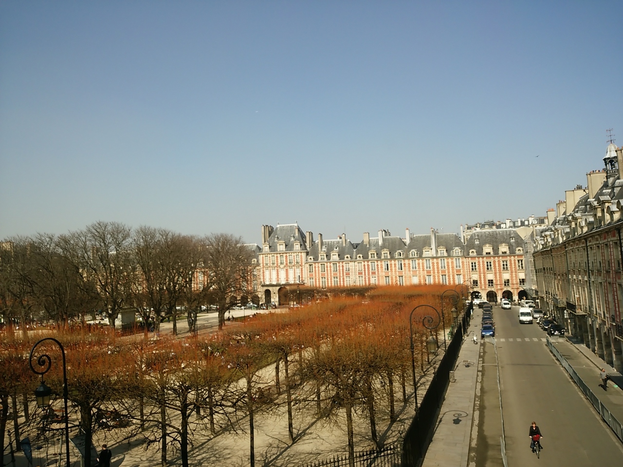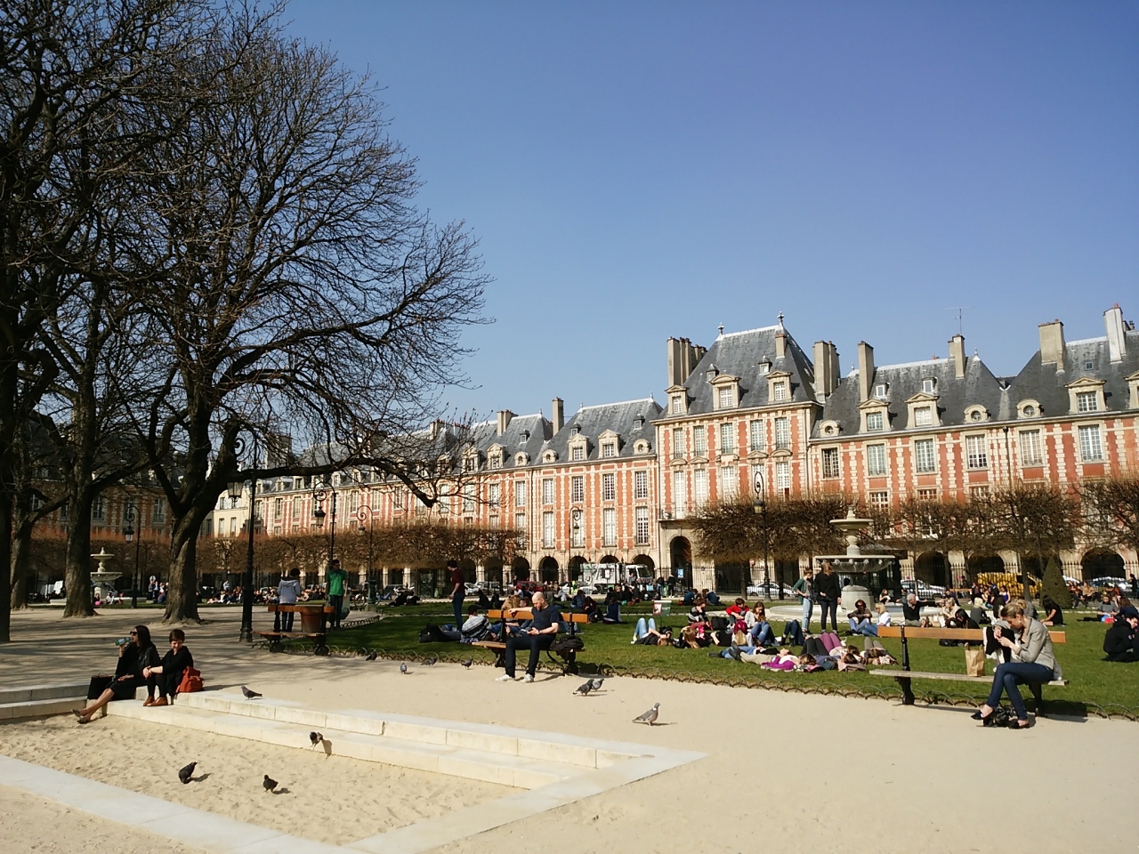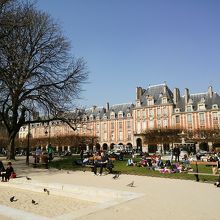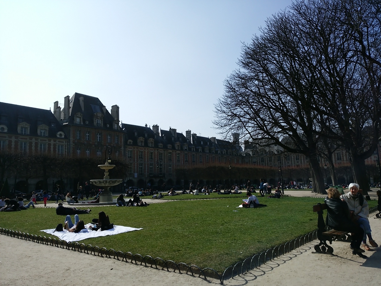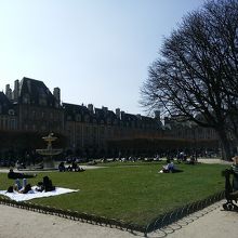 ヴォージュ広場は広い公園になっていて、昼食を食べたり、憩っている大勢の人で埋め尽くされていました。