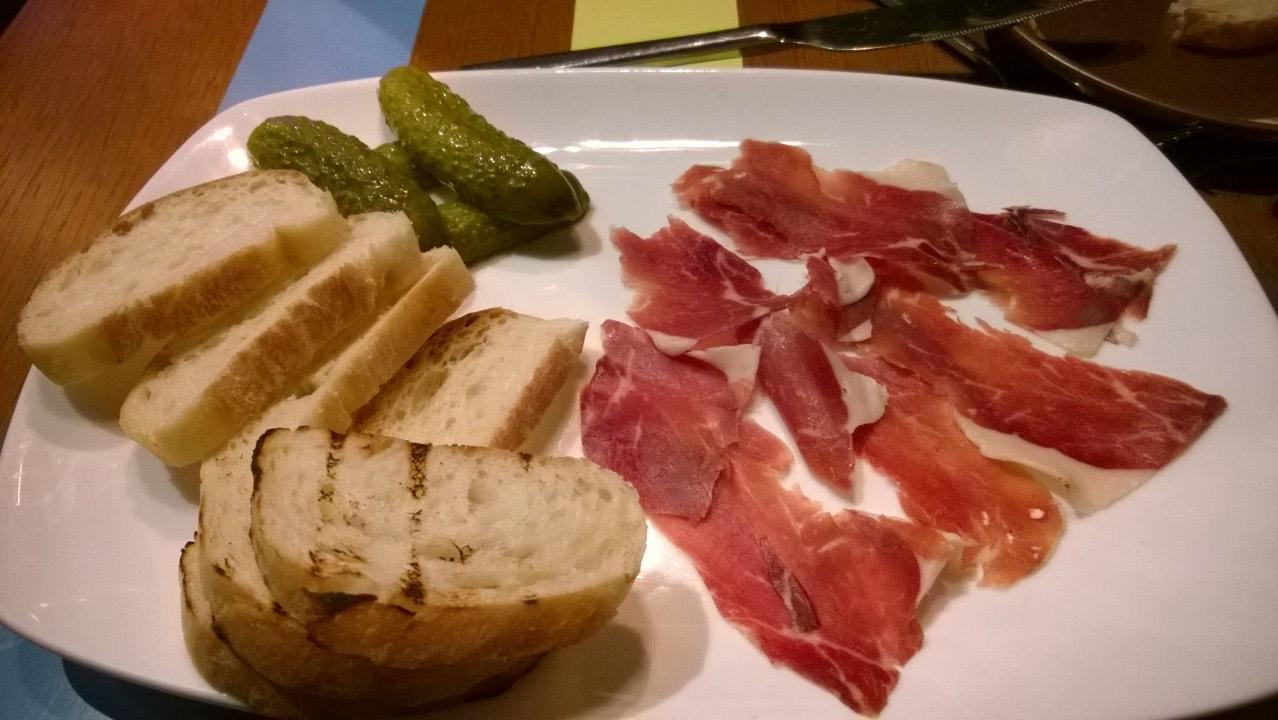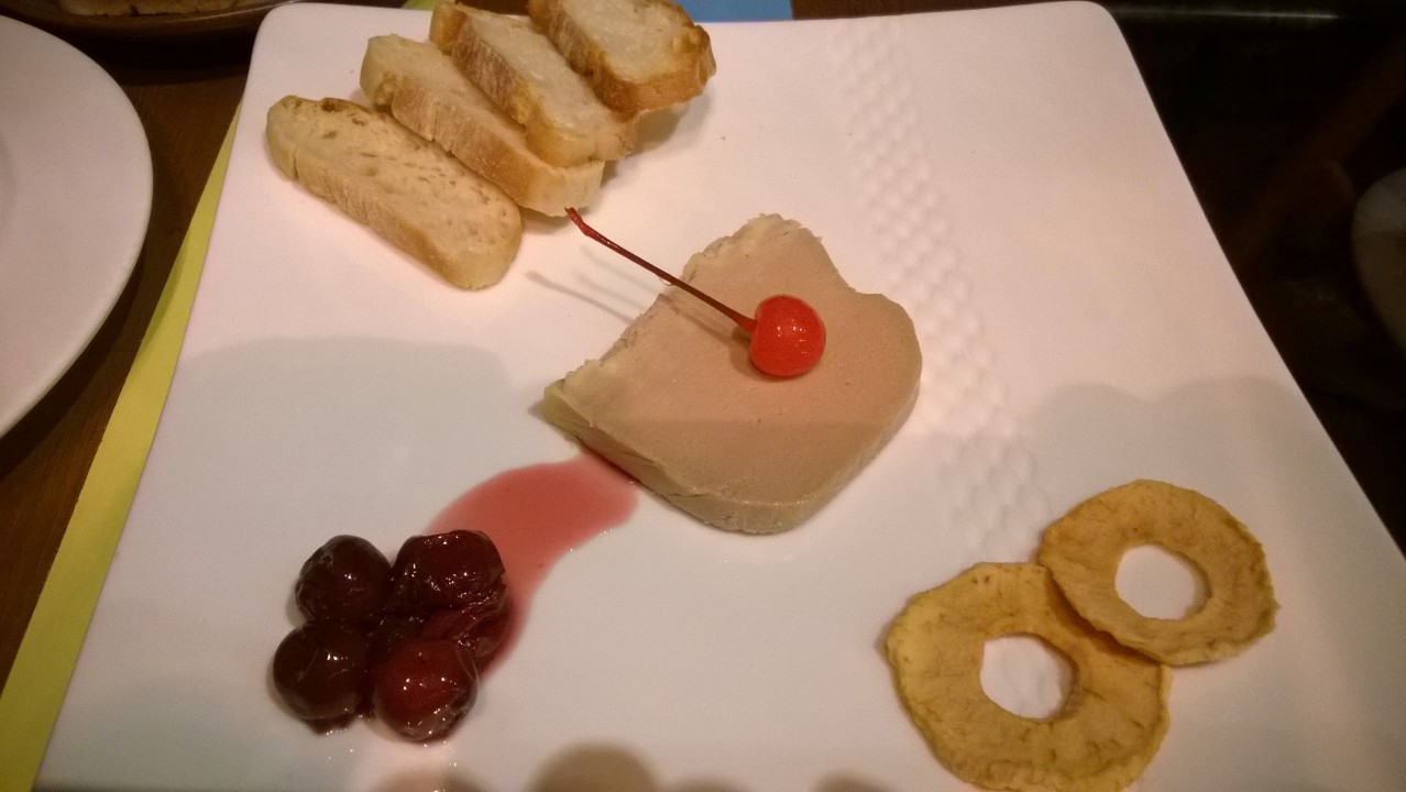 メニューは前菜に海鮮マリネのセビーチェ、フォアグラ。メインにラムチョップ、牛肉ステーキ、デザートという3コースでした。それ以外に生ハムも別注文しました。