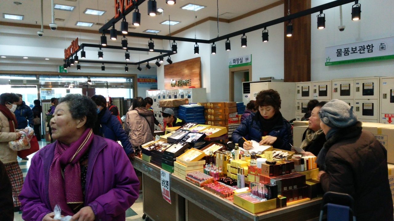 チャガルチ市場に向かう途中、通り道であるとわかっていたので寄ることに・・・中は天井が高く、開放的。手前に量り売りのキムチとかが置いてあり、レジ横からお米売り場、野菜売り場、海鮮売り場と続きます。海鮮・・・買ってそのまま持ち込めるのならいっぱい買ってみたいんだけどな!値段はEマートとどっこいくらいです。