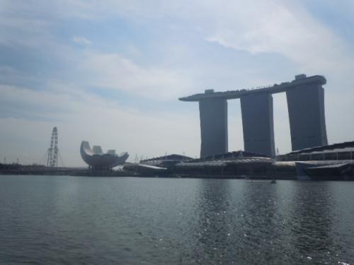 マリーナベイサンズホテル前のボート乗り場から対岸のマーライオン公園へマリーナ湾を渡ります。