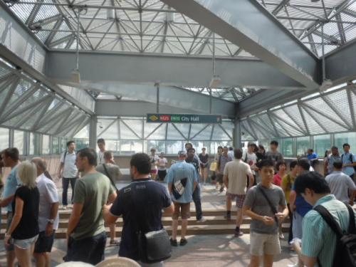 ラッフルズホテルの目の前にある、ショッピングセンターの地下と連結してMRT・City Hall駅があります。