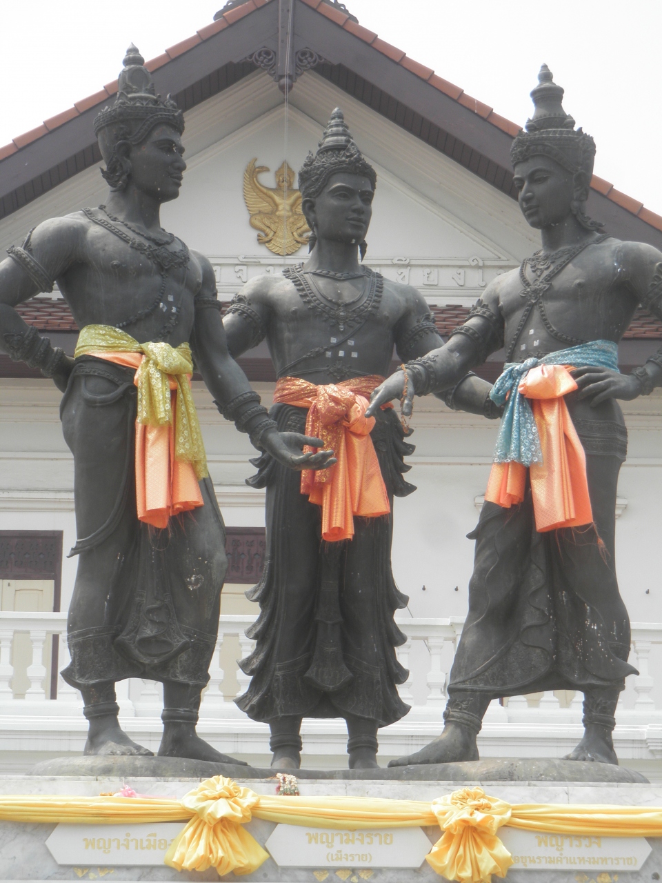 チャンマイの旧市街を徒歩で散策しました。 チェンマイ芸術文化センターの前に、黒い3人のマッチョぽい立像があるのが、三王像広場です。 像はそれほど大きくなく表情はなごやかな感じです。 チャンマイは蒸し暑かったので、この近くにかんじのいいカフェがあって一服しました。