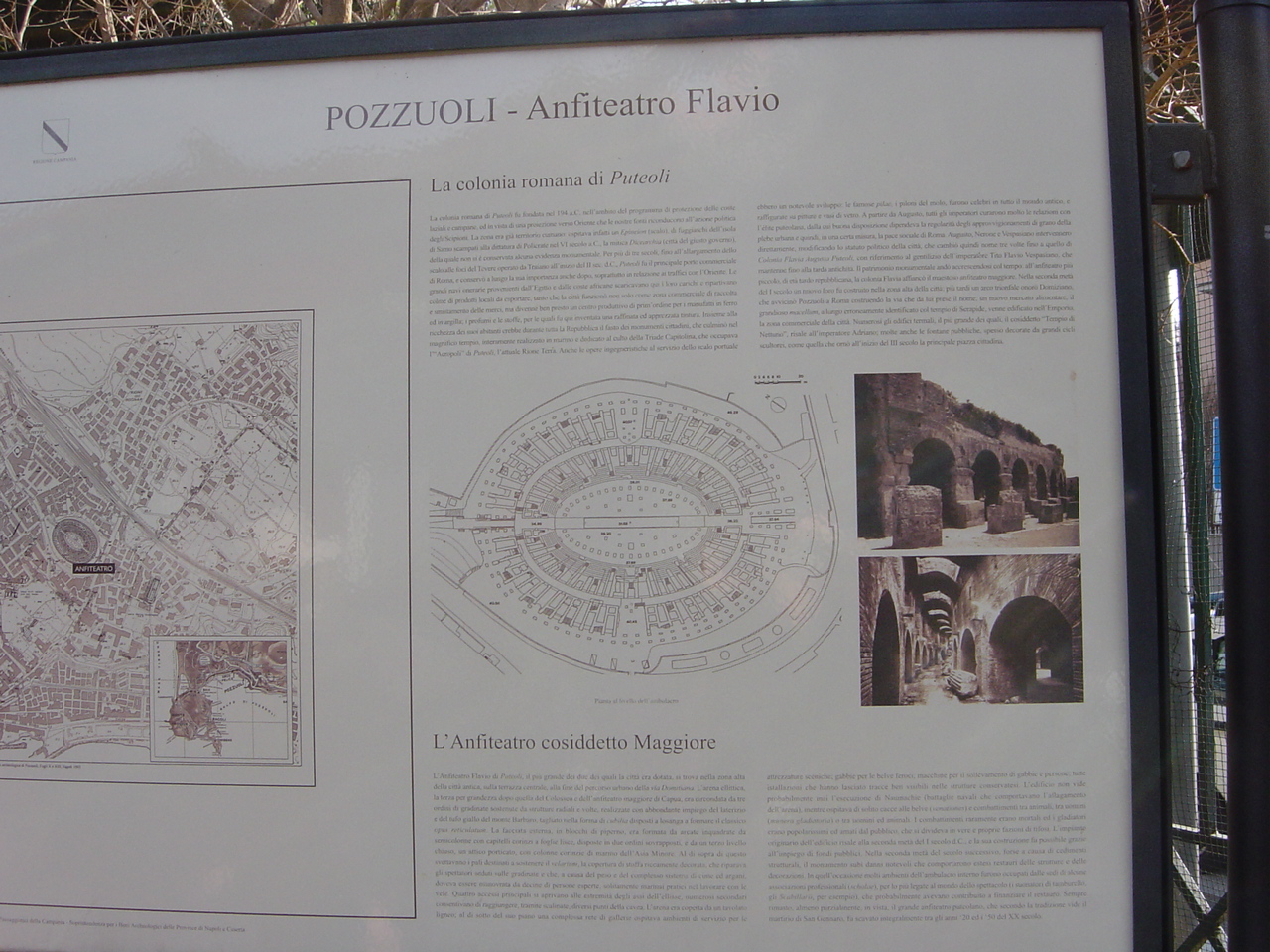 見どころはソルファターラと呼ばれる硫気孔がありまるで地獄谷を想像させるような風景に出会えると言われるが、我々は時間の関係でローマとカプアに次ぎ世界のトップ3に入るとと言われ規模を持つ円形競技場を見学した。