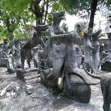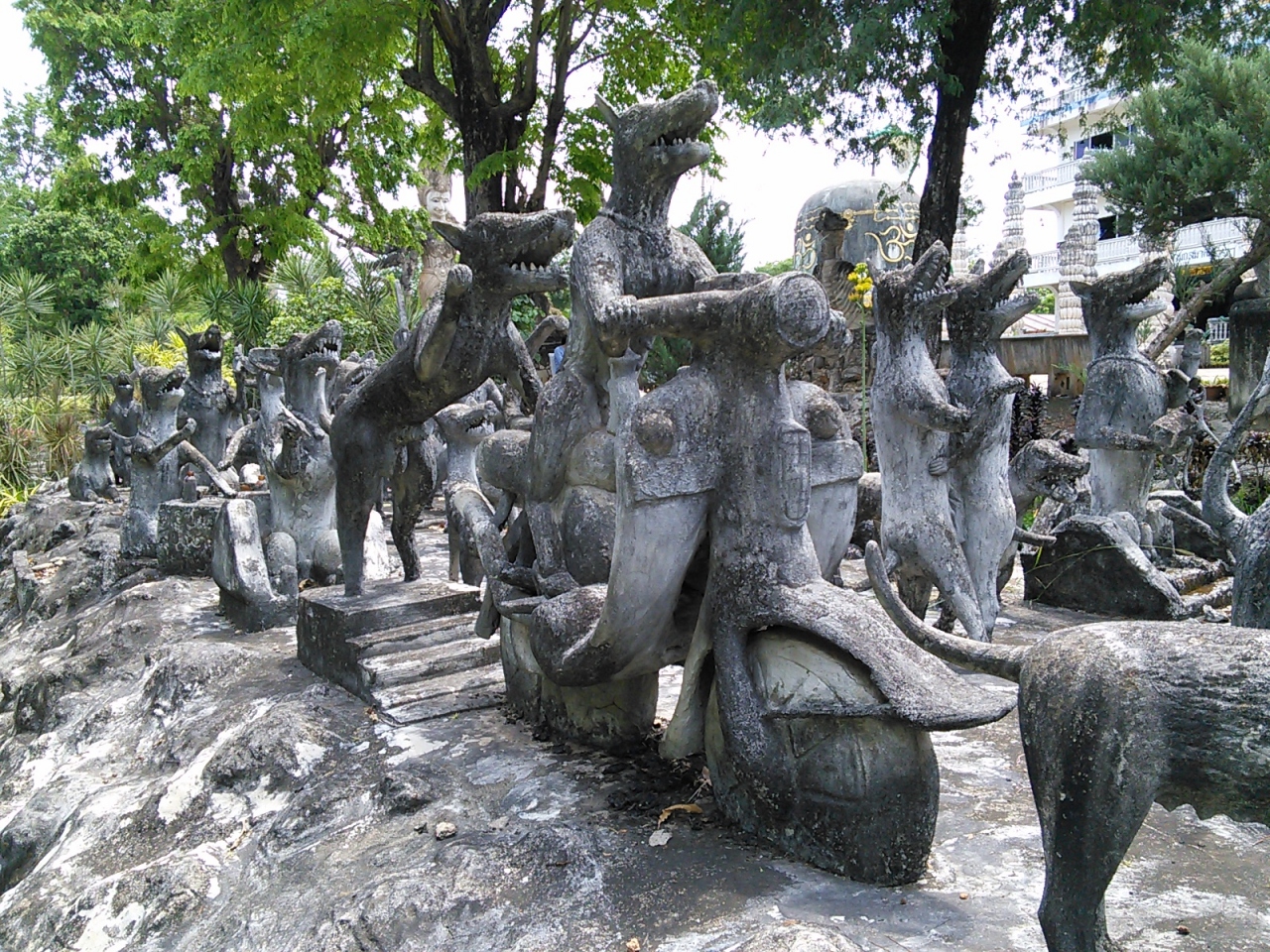 ラオスのすぐ近くの対岸にも似たような寺院がありますがどちらも1973年にラオスからタイに亡命したルアンプー・ブンルア・スラリット師によって建てられたものということを知り合点しました。寺院内には奇妙というかシュールな仏像やオブジェが並んでいます。説明書きのようなものが所々にありますがタイ語なので理解不能。ただ眺めて楽しむしかありませんでした。立派なサボテンも数多く育てられておりこちらも楽しめます。