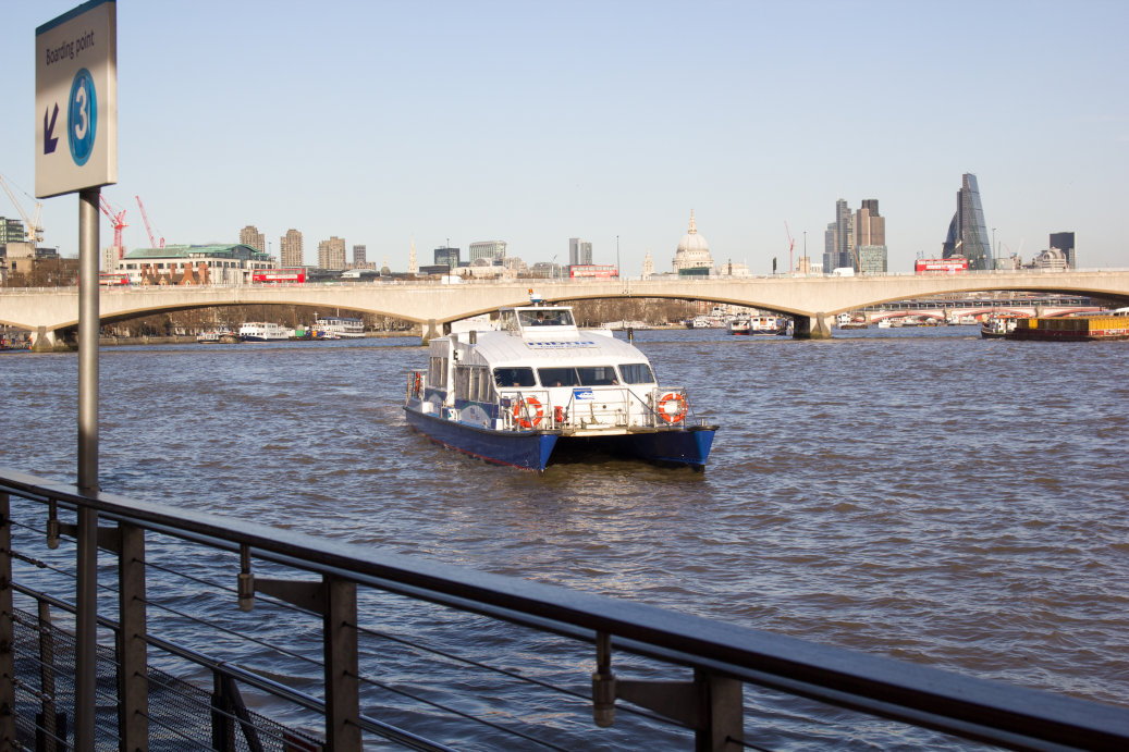 テムズクリッパーズという通勤向けのボートに乗りました。目的地までのチケットを買い、乗り込みます。直通の船がなければ、途中で降りて乗り換えても良いとのことでした。