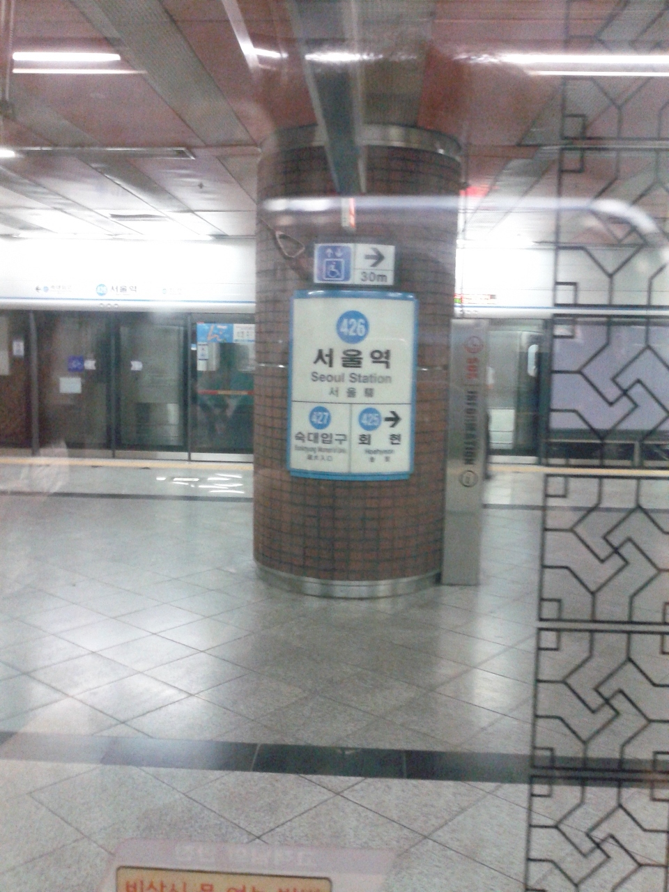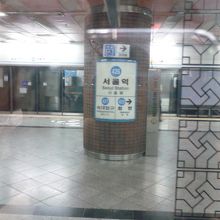 英語の表記や426という番号表記もあるので韓国語が分からなくても利用しやすいです。KTX発着(日本の新幹線のような電車)やインチョン、キンポ空港からの地下鉄最終駅でもあるソウル駅です。人混みです。空港から到着するソウル駅から、市内へ向かうソウル駅やKTXのソウル駅は、駅の中を少し歩くので乗り継ぎに15分位かかると思った方が良いです。(なにしろ人が多いですから)写真は市内へ向かう地下鉄のソウル駅の写真です