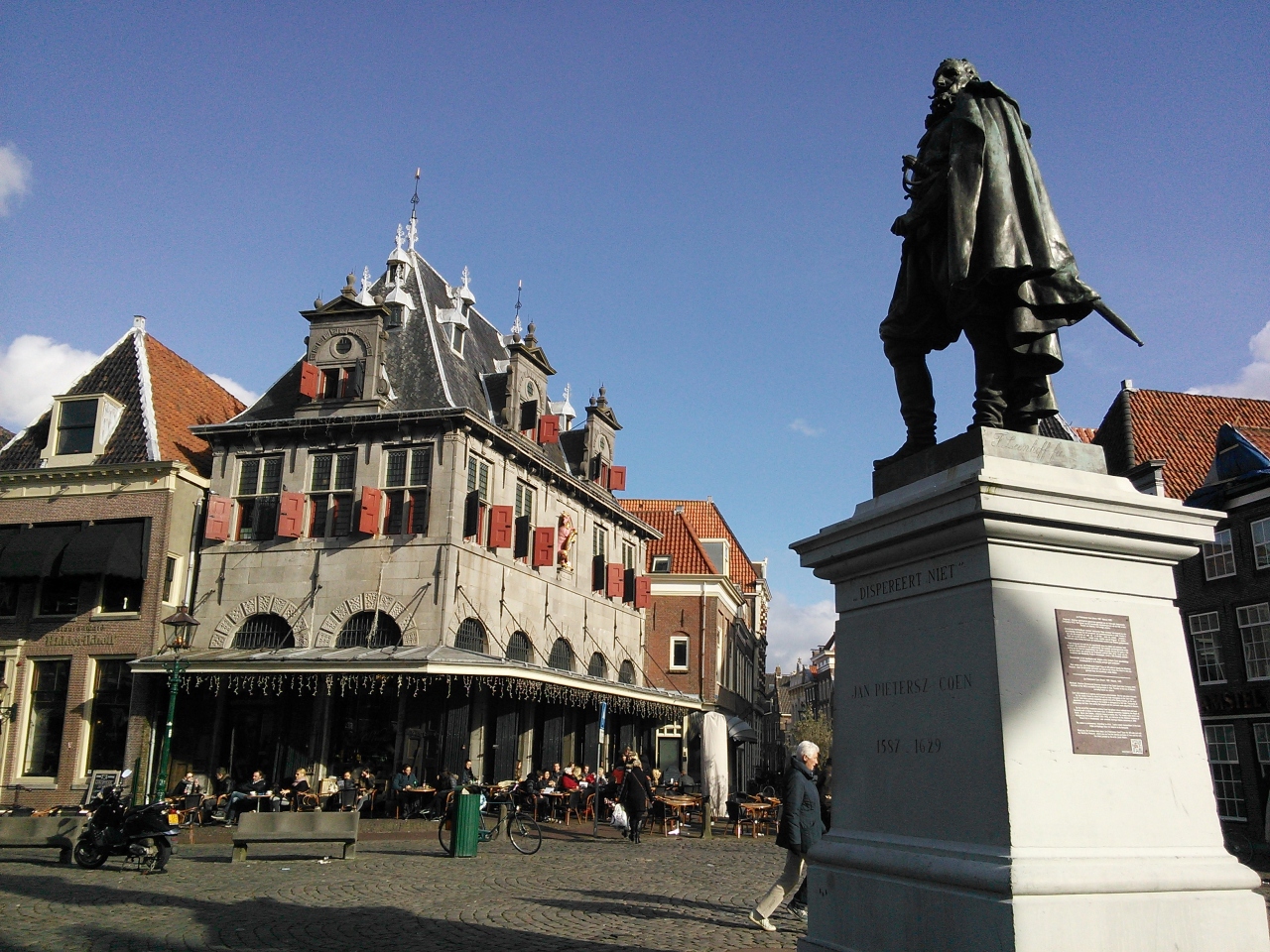 一番賑やかなショッピング通りを進んでいくと辿りつきます。この町に来たのなら必須の場所だと思います。計量所(現在はレストラン)と西フリージアン博物館は黄金時代の建物なので、当時の雰囲気が感じられます。また、オランダ連合東インド会社総督ヤン・ピーテルスゾーン・クーンの像があります。