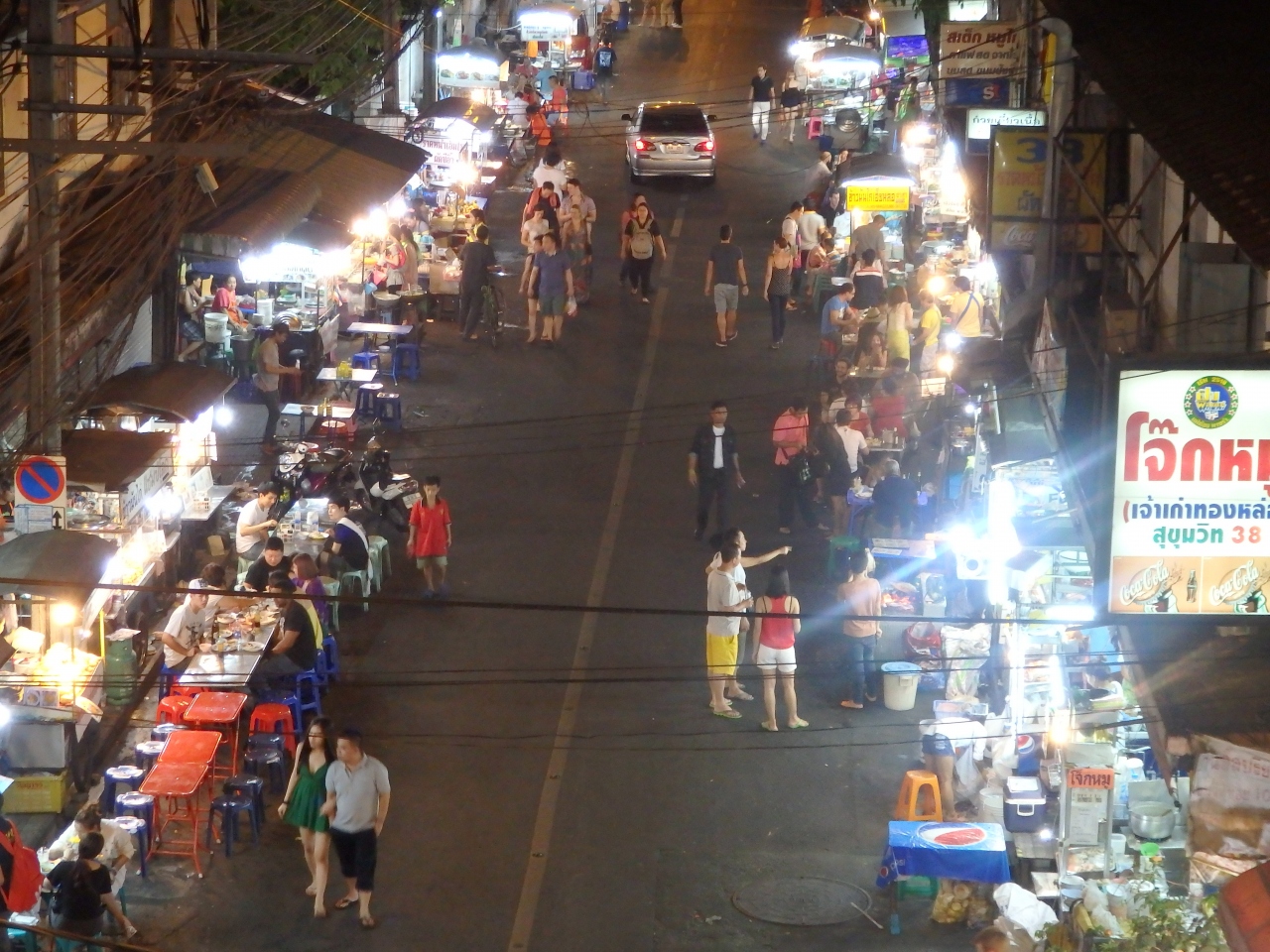 BTSトンロー駅4番出口すぐのソイ38にある屋台街です。すべてが屋台と言うわけでもなく、道の片側には、店の1階部分の店頭で調理し、店内にテーブルがあるという半屋台的なお店もいくつかあります。