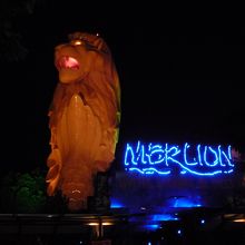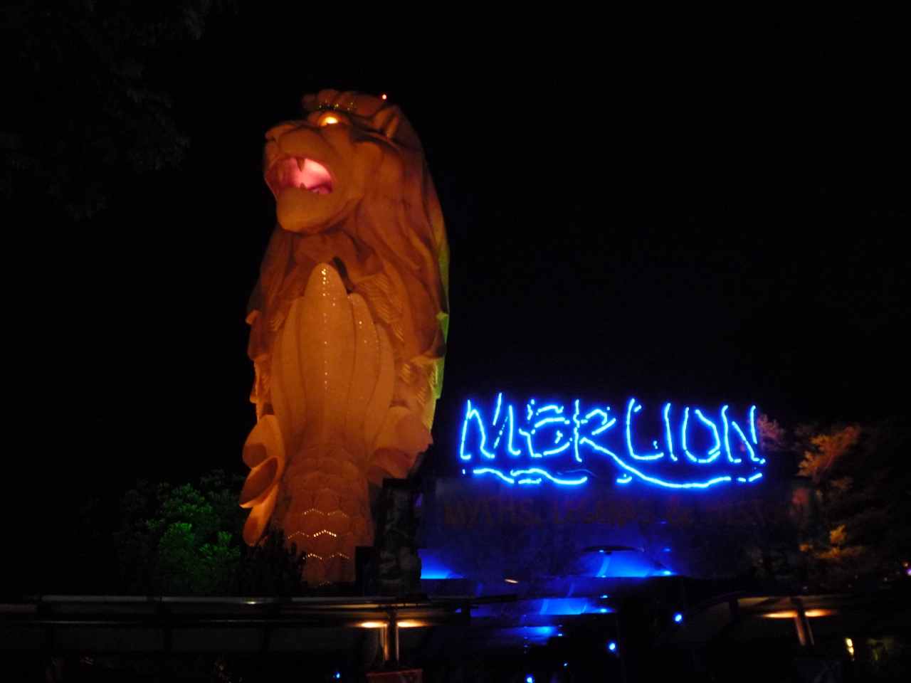 この大きなマーライオンは中に入ることができました。エレベータで上に上がるとマーライオンの口の所に着きます。夕方に上がったのでそこから眺める景色はきれいでした。そこでは係の人が写真を撮るのですが、係の人に聞くと買う必要は無いと言って、なんなら写真を撮るよと言ってくれ親切に撮ってくれました。なかではマーライオンの歴史をアニメで説明したり、お土産物屋が入っていました。