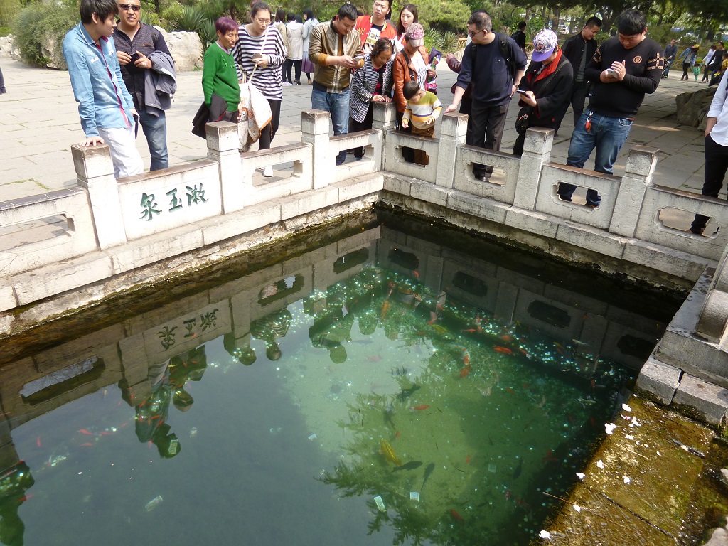 済南を代表する観光地とされており、多くの旅行者で賑わっていました。天下一の名泉とのことで、きれいに澄み切った水と豊かな緑が旅人を癒してくれます。中国は広い国土を持ちますが、海に近い場所では人が飲み水として利用できる水を確保できる場所はきっと少なかったことでしょう。そういう意味で、周辺に泰山をはじめとする山塊を抱える済南のこうした泉が古代中国で注目されたのではないでしょうか。