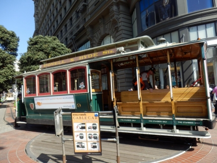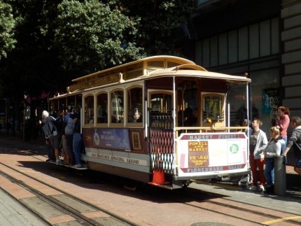 絵本から出てきたような可愛いケーブルカーはサンフランシスコの名物でもあります。