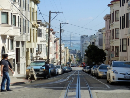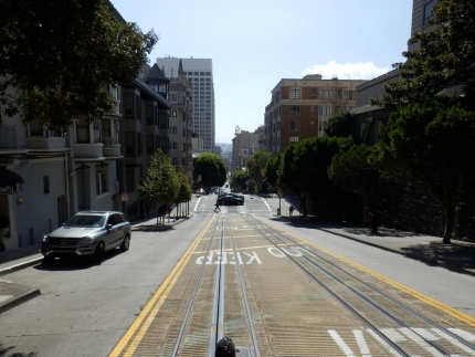 この路線で通るハイド・ストリートからの景色が、写真でもよく見る坂の上から海を見下ろす風景です。