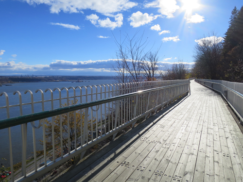 テラス・デュフランから階段を登っていくと、総督の散歩道に出ます。左手にセントローレンス川を見下ろしながら歩ける木の遊歩道で、天気の良い日だったので非常に気持ちよく幸せな気持ちに包まれました。テラス・デュフランだけ歩いて戻ってしまう観光客が多かったですが、ぜひここまで足を伸ばしてみるとよいと思います。