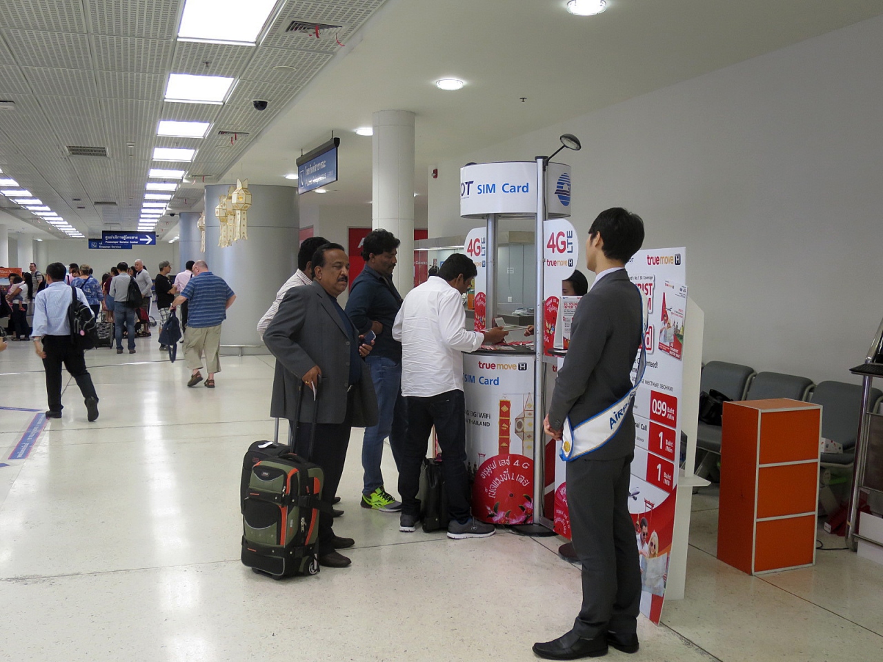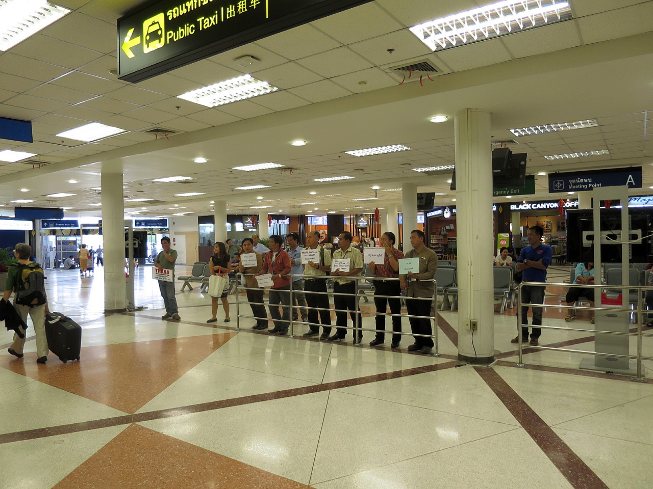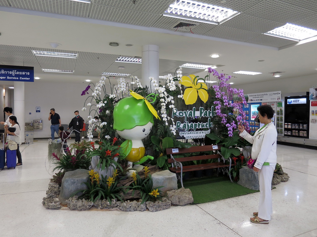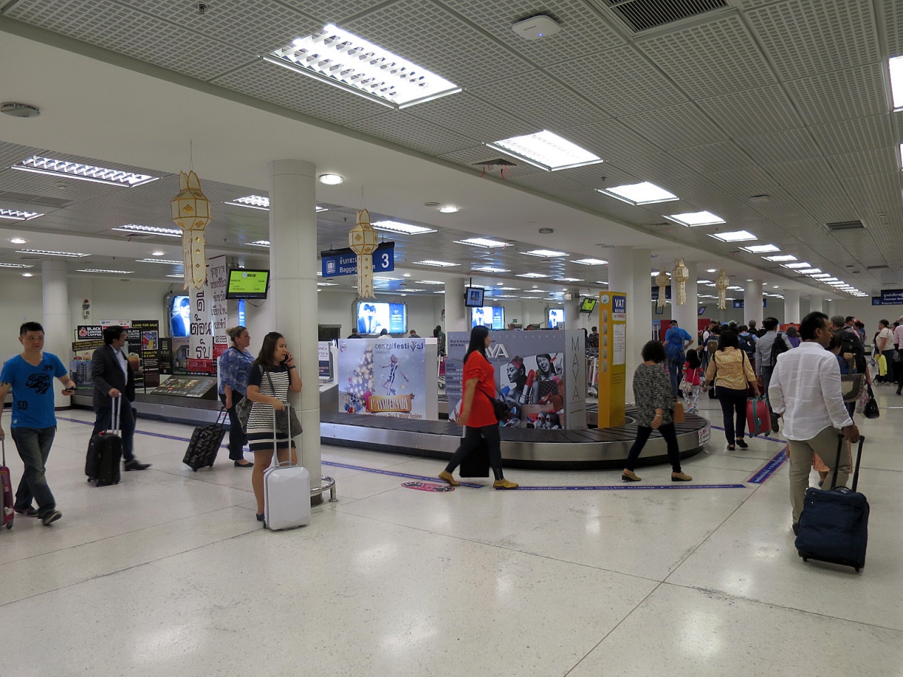 バンコクからタイ国際航空を利用してチェンマイ国際空港に到着しました。到着スポットから出口に向かう通路からはドイステープが見られ、「チェンマイに着いたなぁ」との実感がわきます。タイ屈指の観光地のチェンマイですからフライトも多いのですが、空港ターミナルは小ぶりで、預け入れた手荷物を受け取るターンテーブルも3台のみですから、混みあうこともあるでしょうね。手荷物受取場に着くと、右手には各種パンフレットの置かれたスペース、トイレ前には携帯電話の無料SIMを配布するテーブル、またメータータクシーとエアポートタクシーの窓口があり、そちらで手続きをしてバウチャーをもらうこともできますが、窓口は受取場の外にも開けていますので、そちら側でも手続きができます。さて荷物を受け取って制限区域を出ると、左手には先ほどのタクシーの窓口があり、そこから目と鼻の先が空港出口で、そこは駐車場にもなっています。その空港出口にはエアポートタクシーのお姉さんが待ち構えており、そのお姉さんに行先を告げると、乗車タクシーが指定され、そのタクシーの運転手に車まで案内されます。エアポートタクシー駐車場の奥がメータータクシーの駐車スペースで、そちらを利用する人は、そこまで自分で歩いて行くことになります。