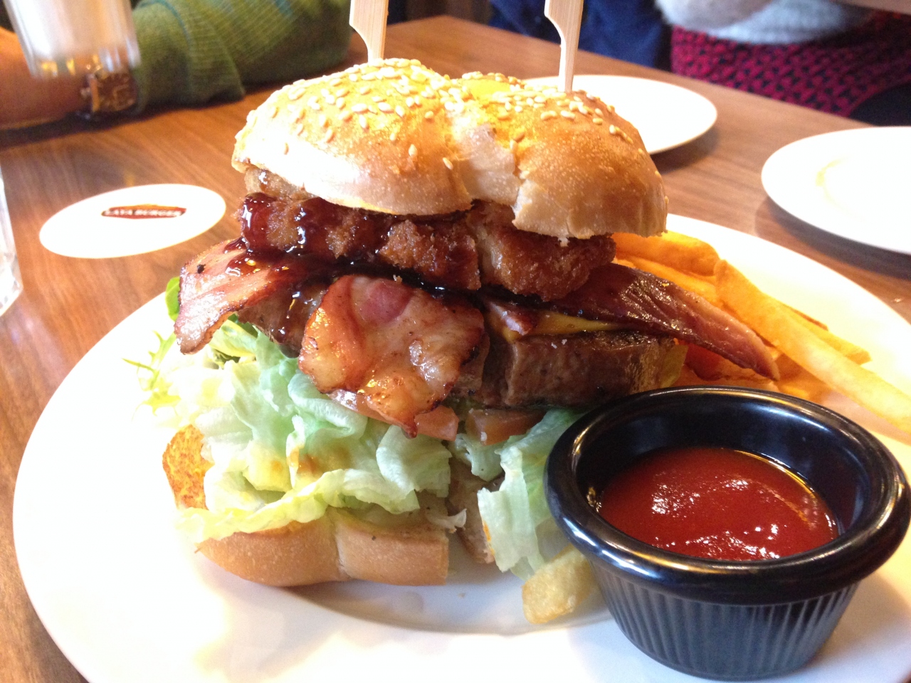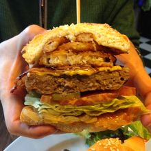 すごい数のお客さん!ボリューム満点ハンバーガー。