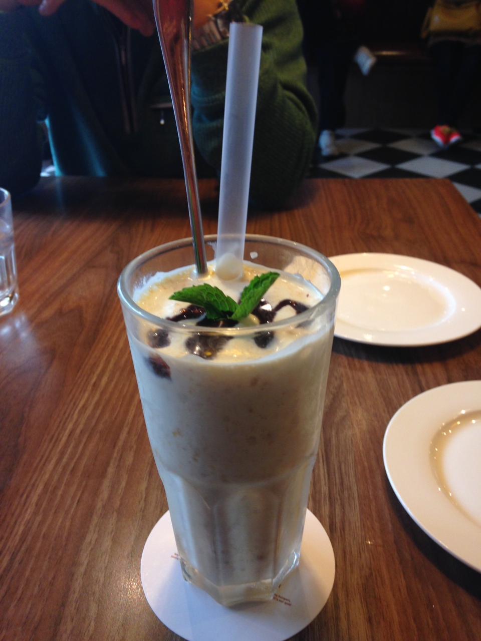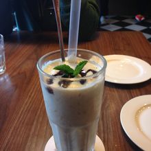 私たちはピーナツバターのシェイク、ハンバーガー2種類をオーダー。